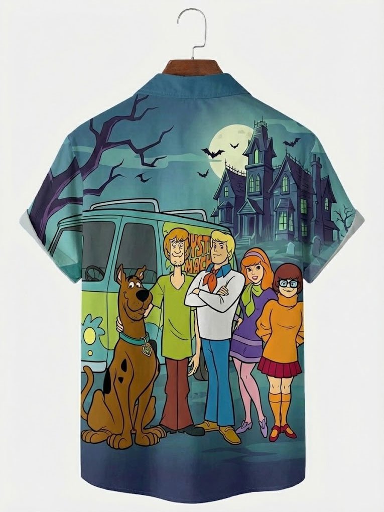 Alohadaddy® Hawaiian Retro Cartoon Print Men's Button-Down Short-Sleeve Shirt Big & Tall