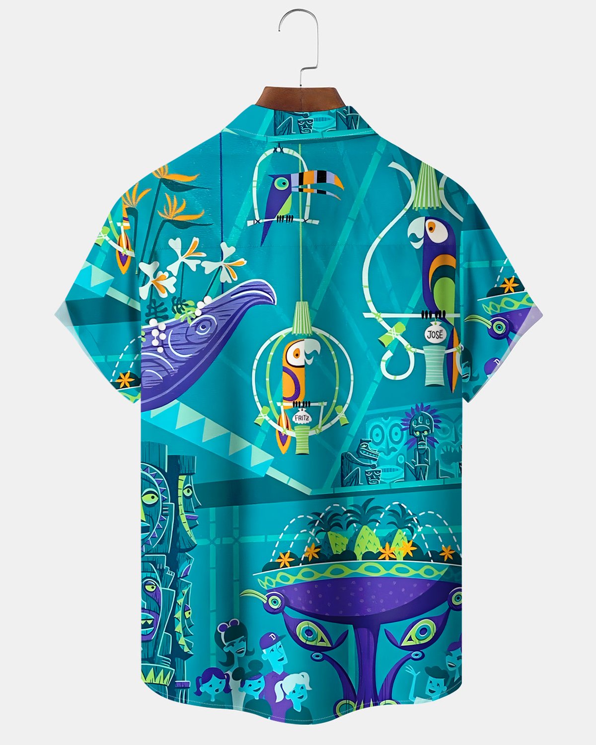 Alohadaddy® Hawaiian Retro Tiki Cartoon Parrot Hawaiian Shirt