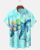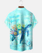 Alohadaddy® Hawaiian Turtle Print Art Button Pocket Cardigan Men's Short Sleeve Shirt Big & Tall