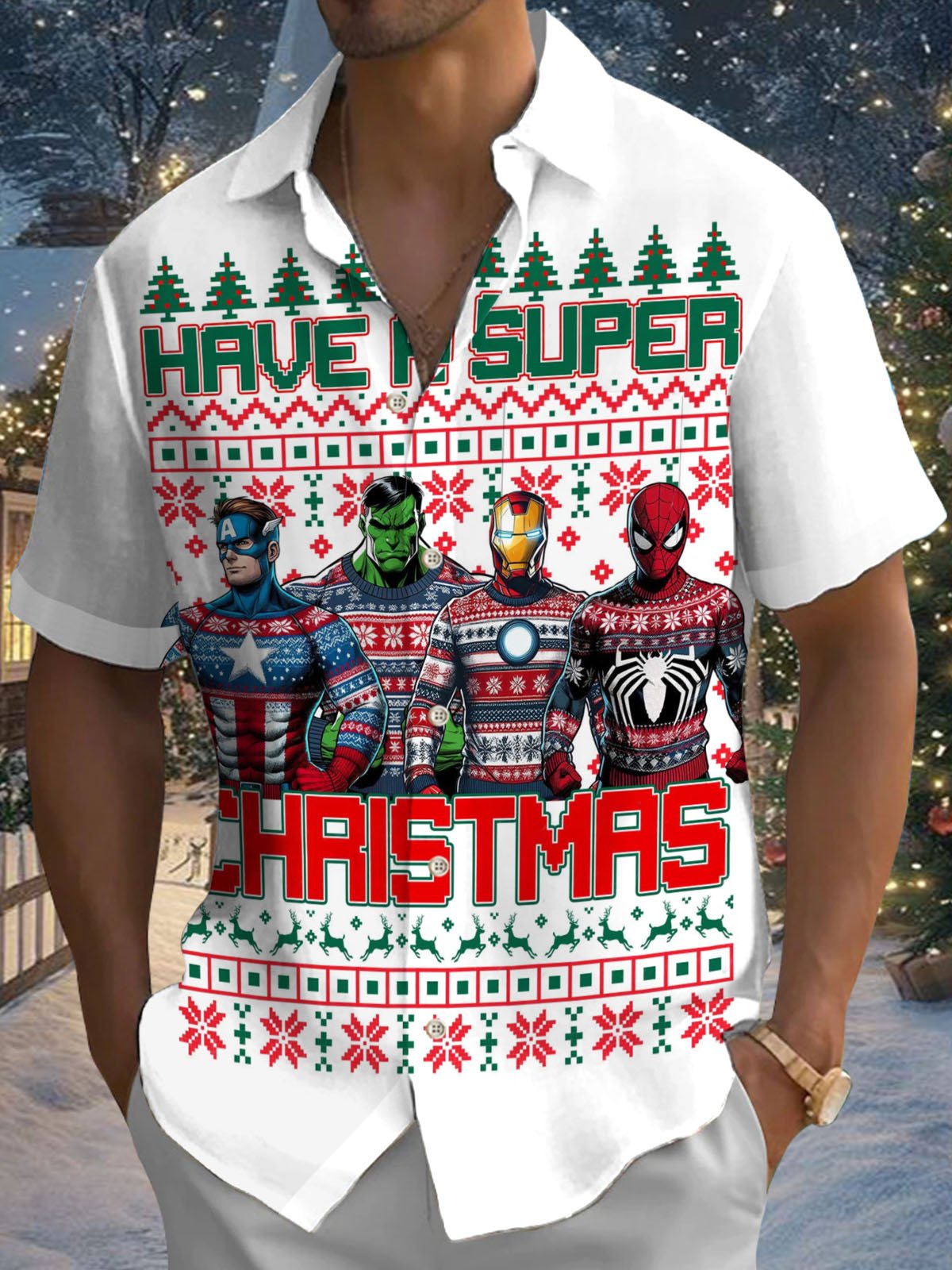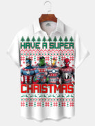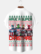 Alohadaddy® Holiday Christmas Cartoon Print Pocket Stretch Men's Short Sleeve Shirt Big & Tall