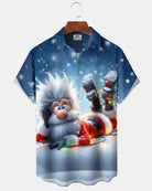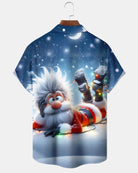 Alohadaddy® Holiday Christmas Cartoon Snow Santa Claus Colorful Lights Men's Short-Sleeve Shirt