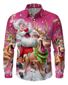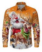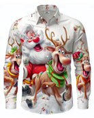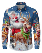 Alohadaddy® Holiday Christmas Santa Claus Reindeer Cartoon Retro Men's Long-Sleeve Shirt