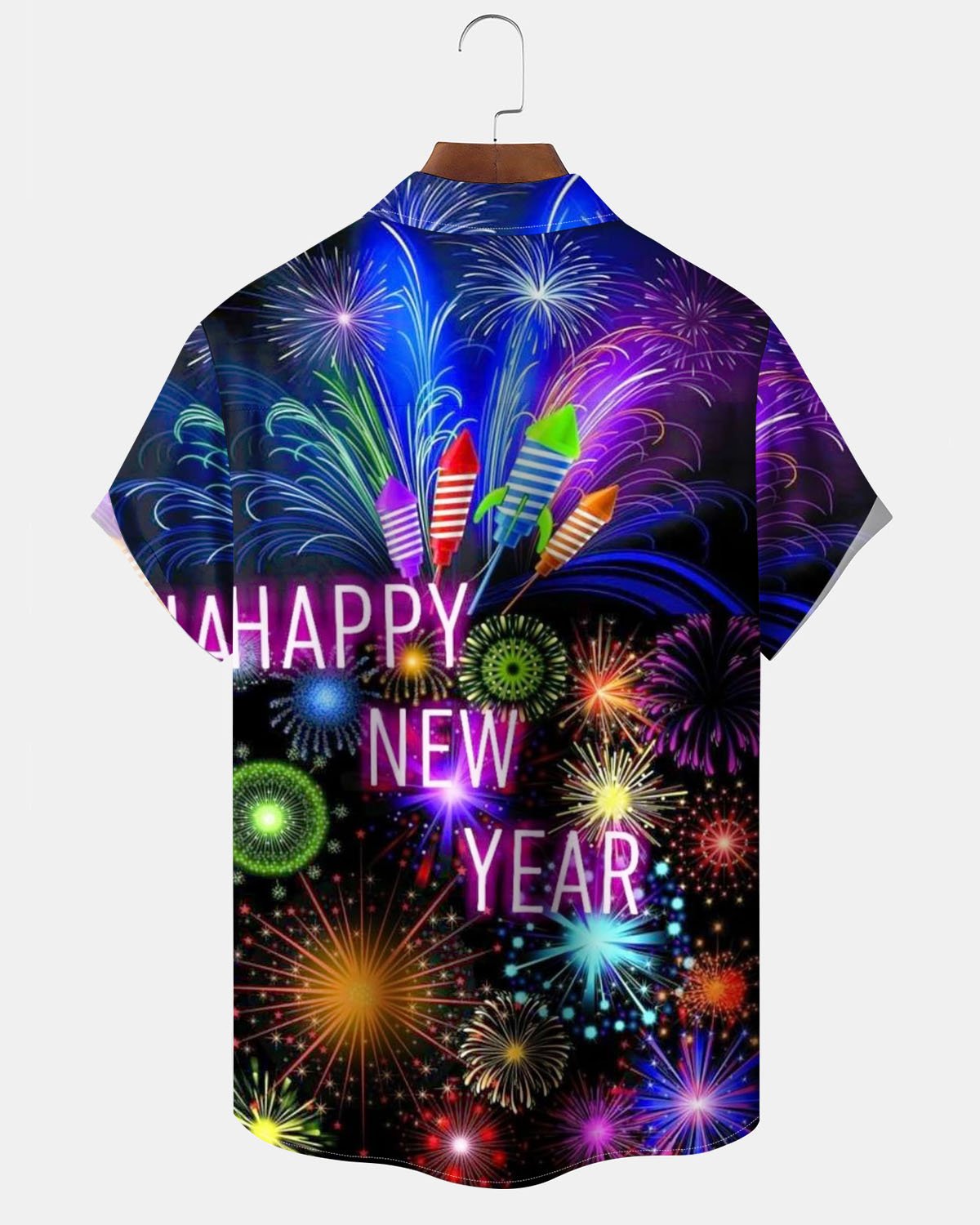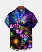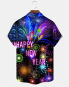 Alohadaddy® Holiday New Year Fireworks Print Art Pocket Stretch Button Men's Short Sleeve Shirt Big & Tall