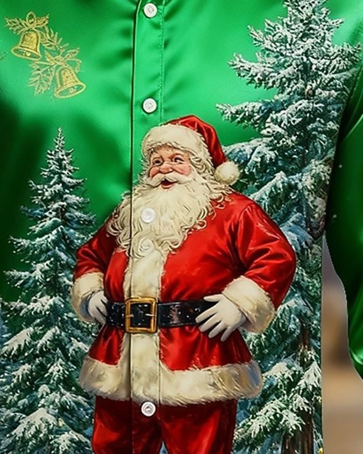 Alohadaddy® Holiday Santa Christmas Tree Vintage Satin Silk Men's Long-Sleeve Shirt