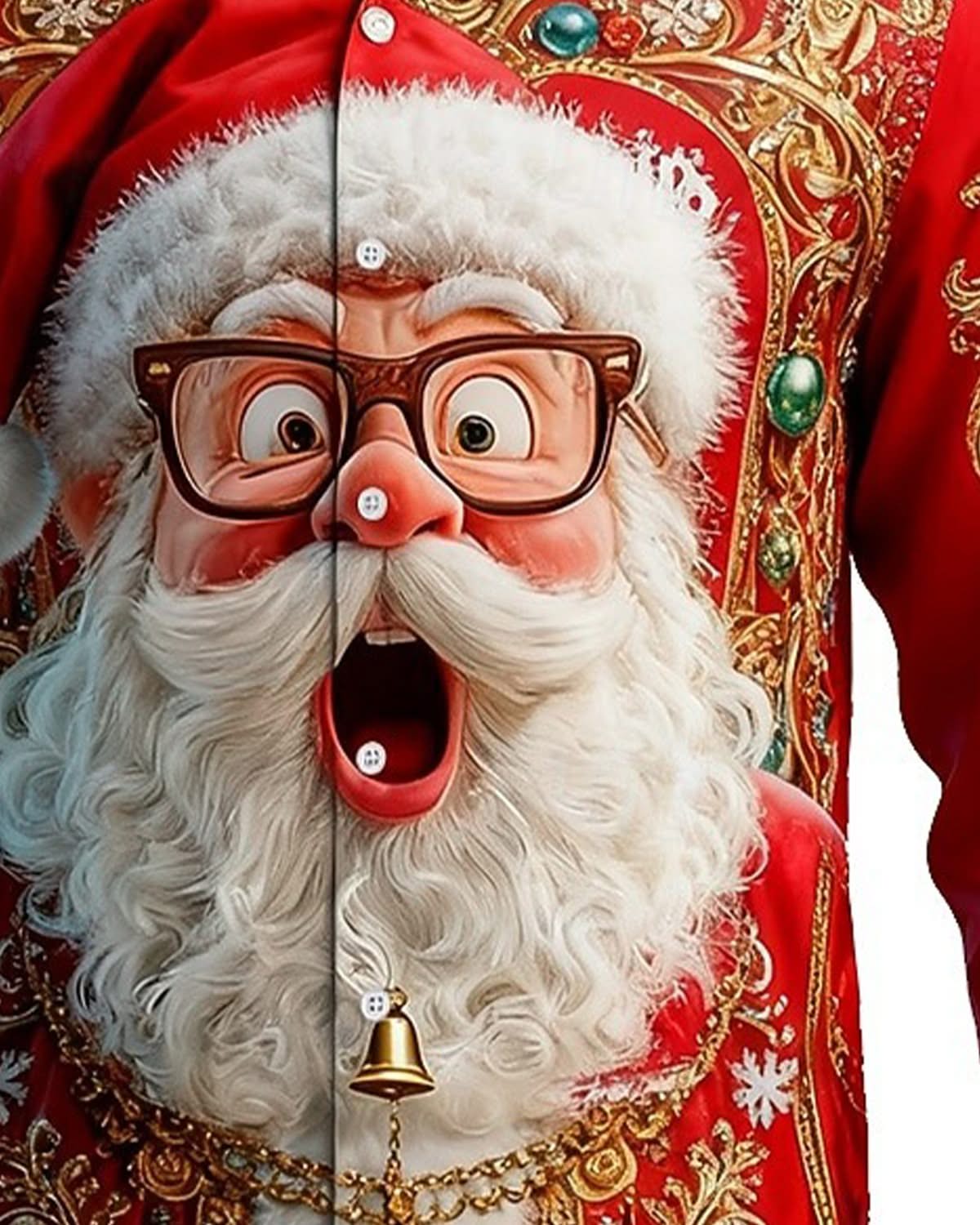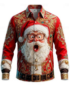 Alohadaddy® Holiday Spooky 3D Surprising Santa Claus Christmas Tree Retro Men's Long-Sleeve Shirt