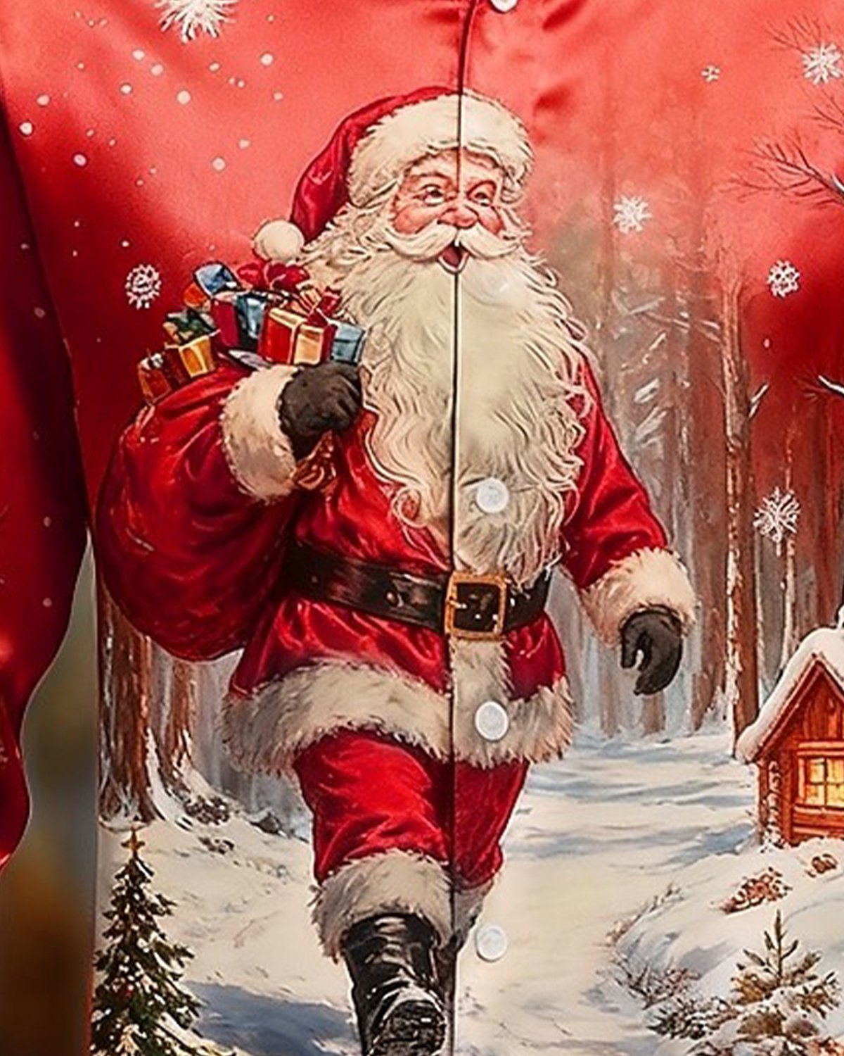 Alohadaddy® Holiday Vintage Santa Gift Snowy Christmas Men's Long-Sleeved Shirt