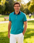 Alohadaddy® Men's Basic Solid Color Striped Short-Sleeve Polo Shirt
