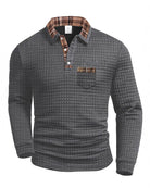 Alohadaddy® Men's Solid Color Geometric Patchwork Fabric Check Long-Sleeve Polo Shirt