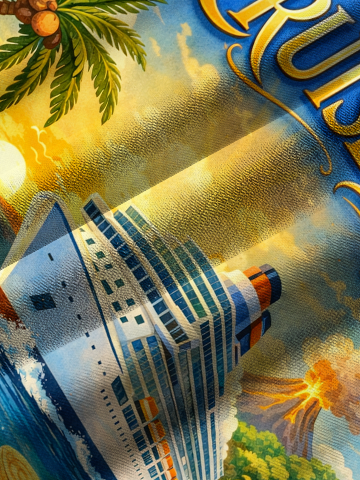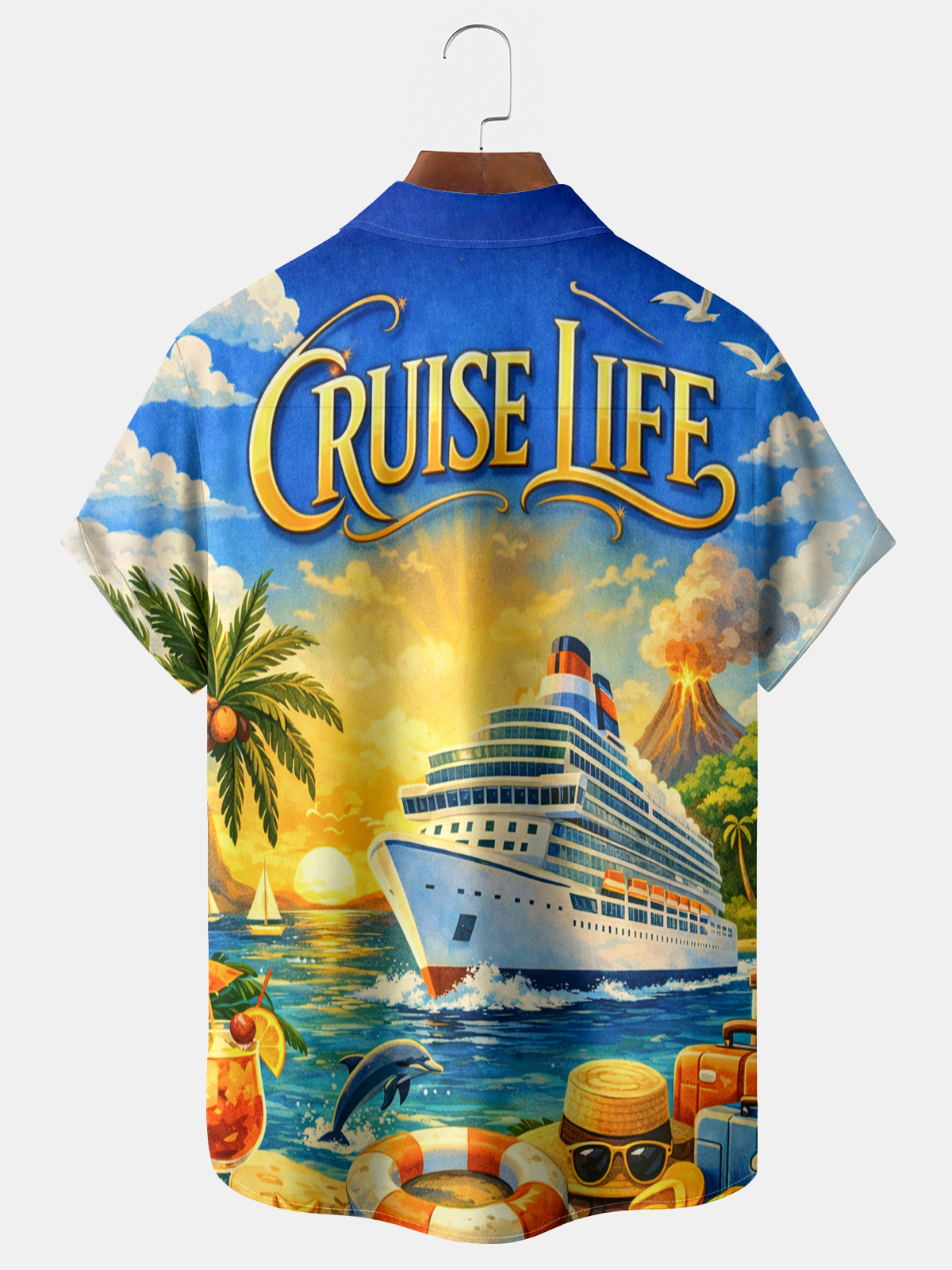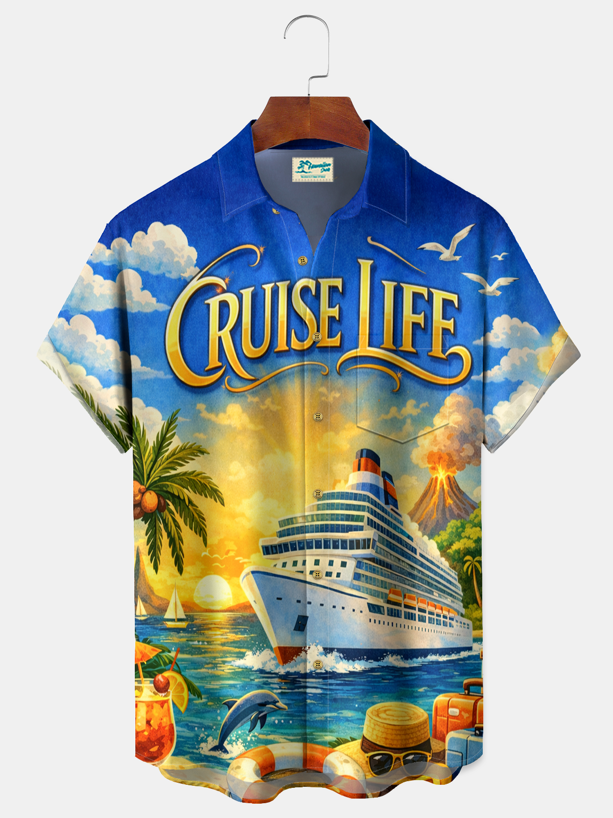 Alohadaddy® Men's Tropic Cruise Life & Tropical Island Sunset Cocktail Hawaii Print Button Down Short-Sleeve Big & Tall