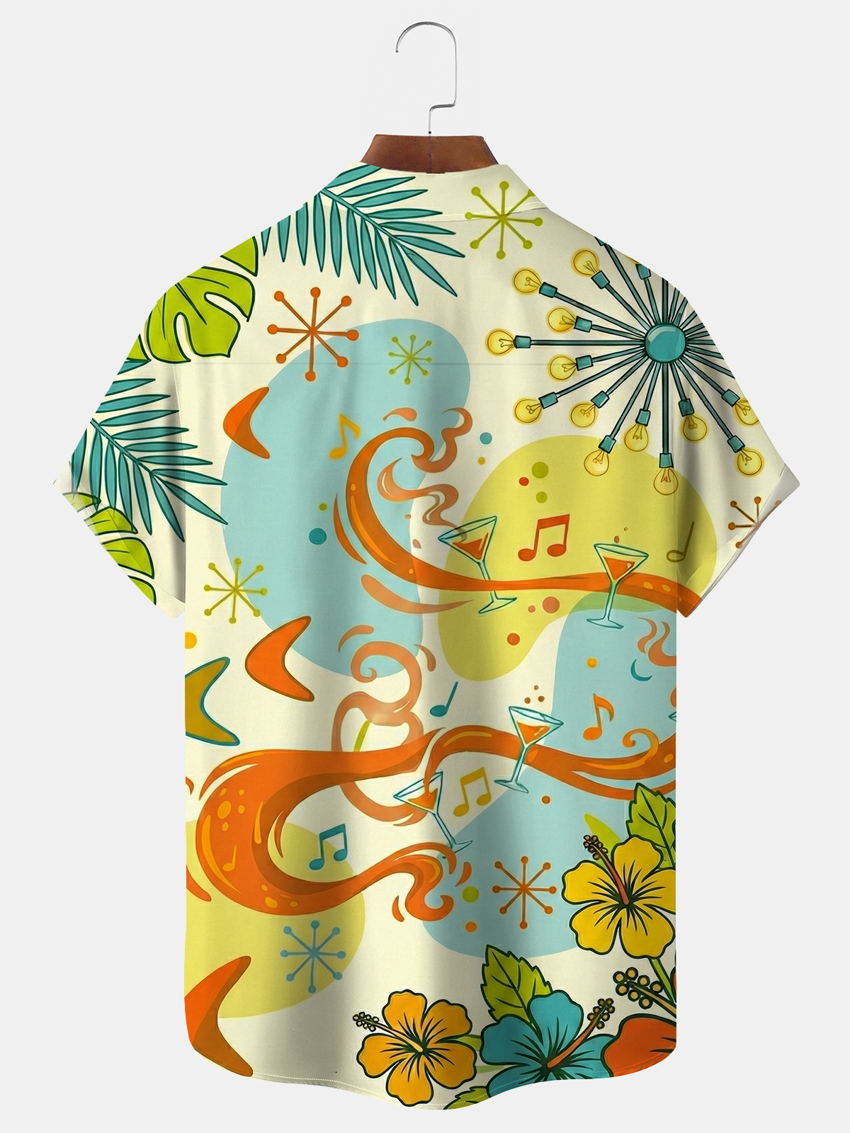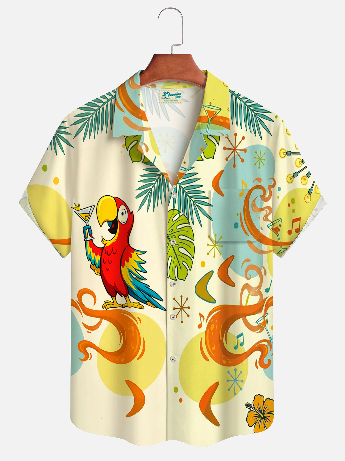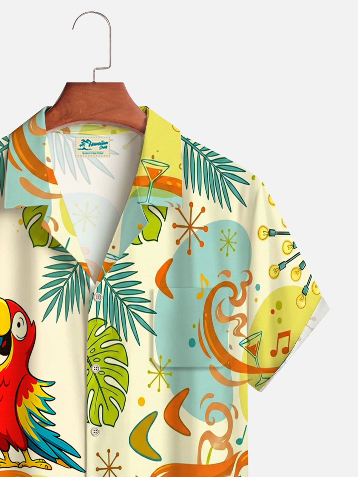 Alohadaddy® Men's Tropic Medieval Geometric Atoms Cocktail Parrot Hibiscus Flowers Gradient Art Forgiving Fit Camp Collar Print Retro Short-Sleeve Shirt Big & Tall