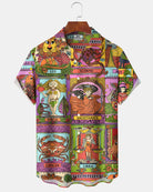 Alohadaddy® Retro Geometric Constellation Print Short-Sleeved Button-Down Shirt