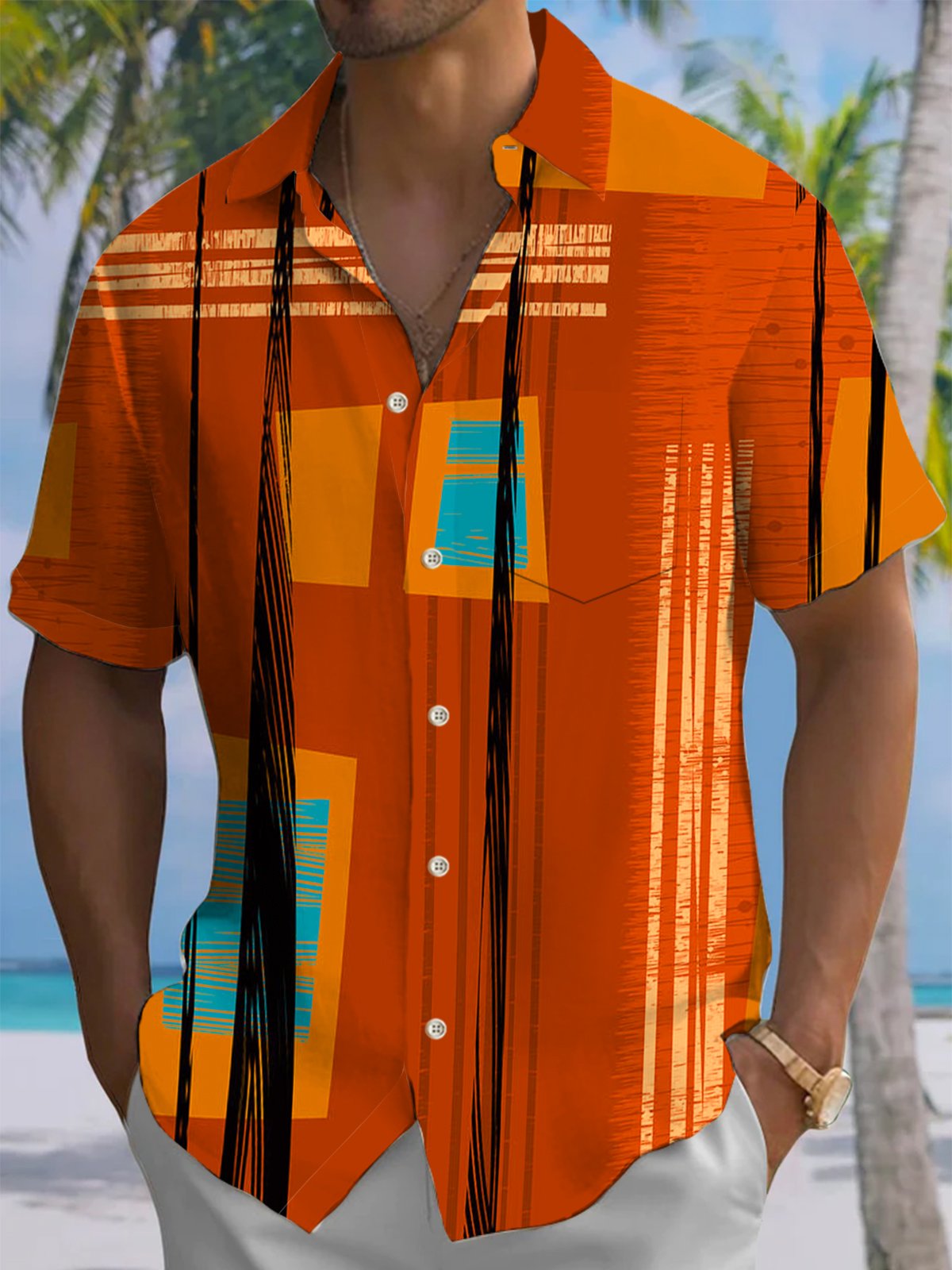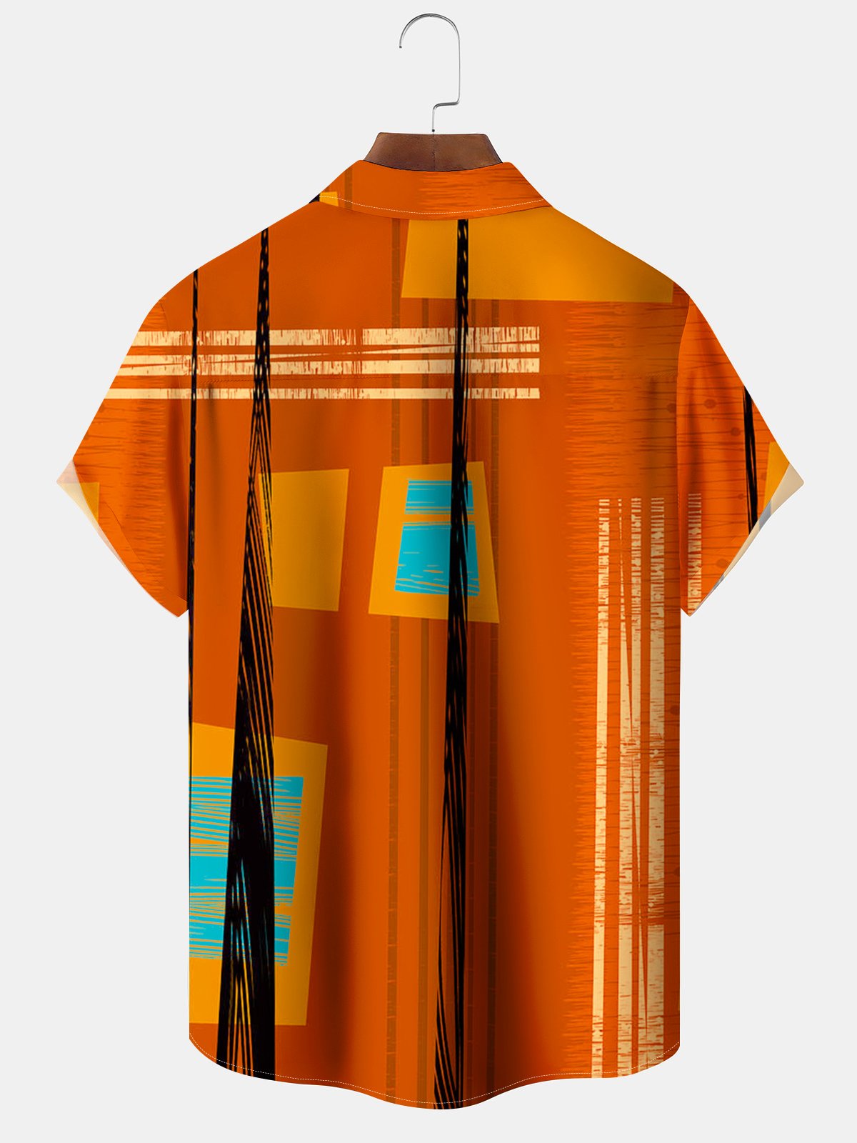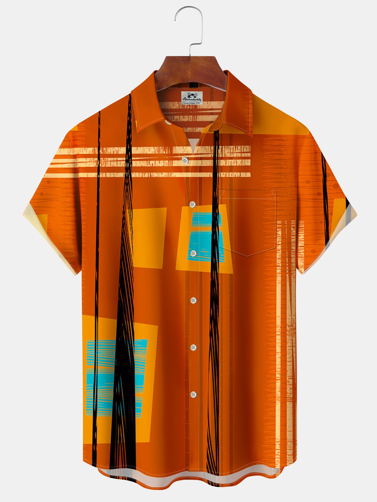 Alohadaddy® Retro Geometric Stripe Print Pocket Stretch Men's Short Sleeve Shirt Big & Tall