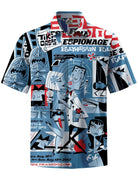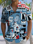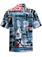 Alohadaddy® Retro Geometric Tiki Art Print Elastic Pocket Button Men's Short Sleeve Shirt Big & Tall