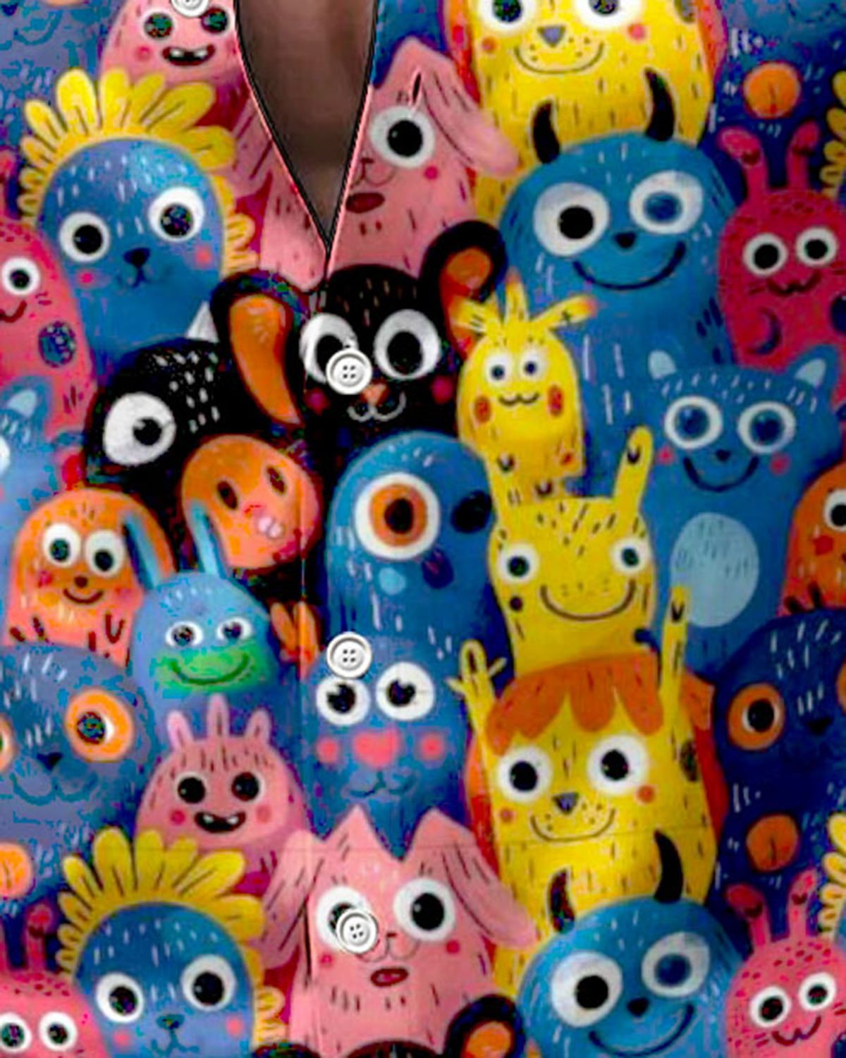 Alohadaddy® Satin Finish Vintage Cartoon Monster Print Art Stretch Men's Long Sleeve Shirt Big & Tall