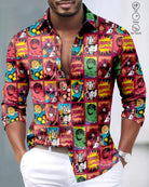 Alohadaddy® Satin Finish Vintage Cartoon Movie Print Art Stretch Men's Long Sleeve Shirt Big & Tall