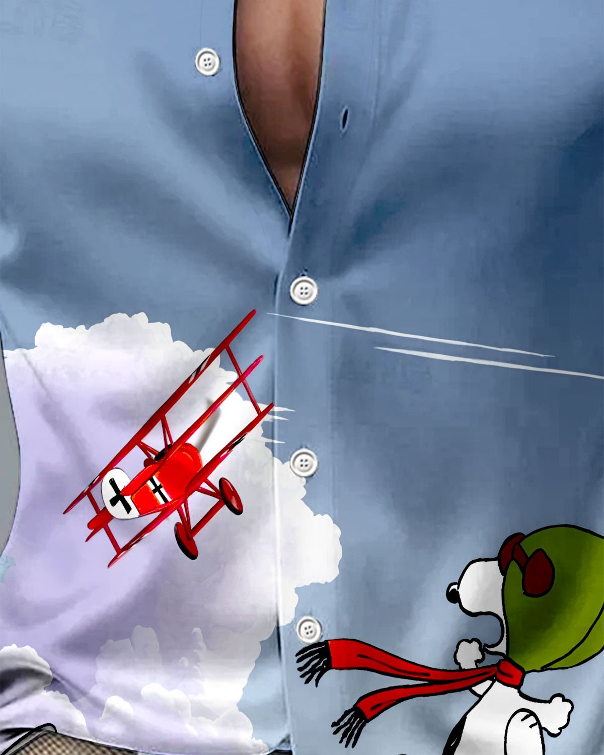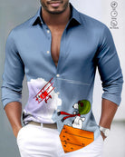 Alohadaddy® Satin Gloss Cartoon Print Button Stretch Men's Long Sleeve Shirt Big & Tall