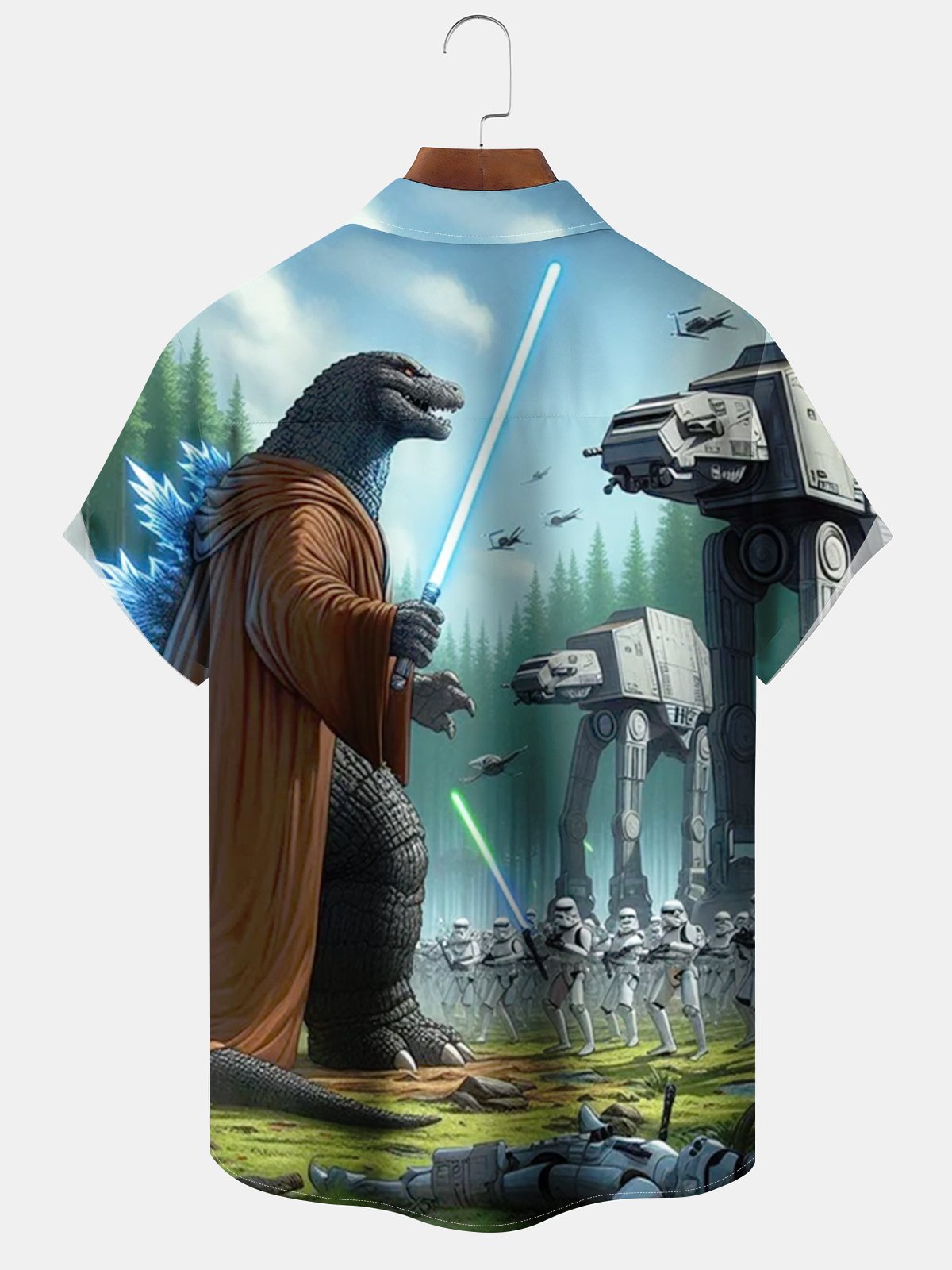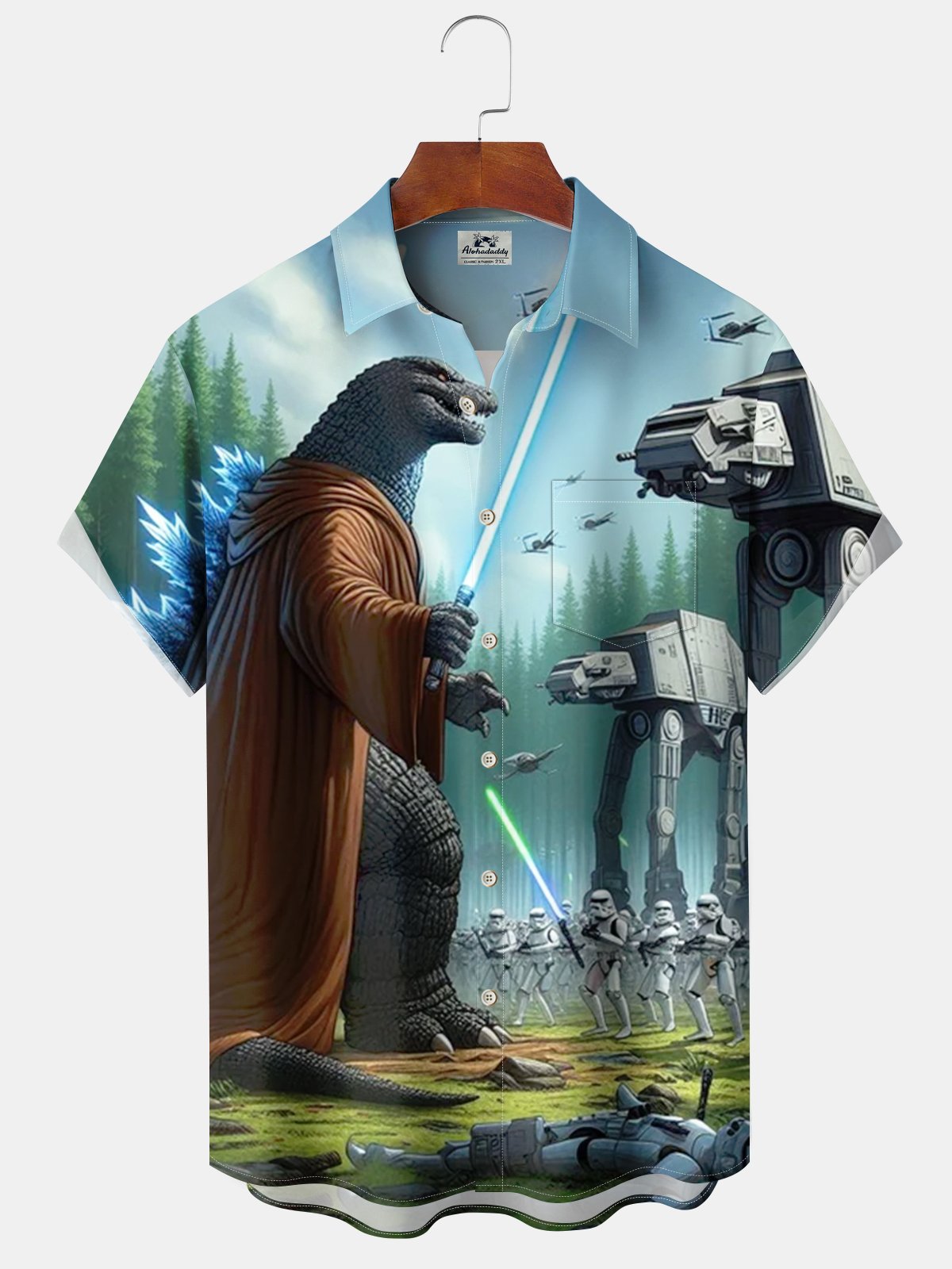 Alohadaddy® Vintage Star Wars Monster Print Pocket Elastic Button Men's Short Sleeve Shirt Big & Tall