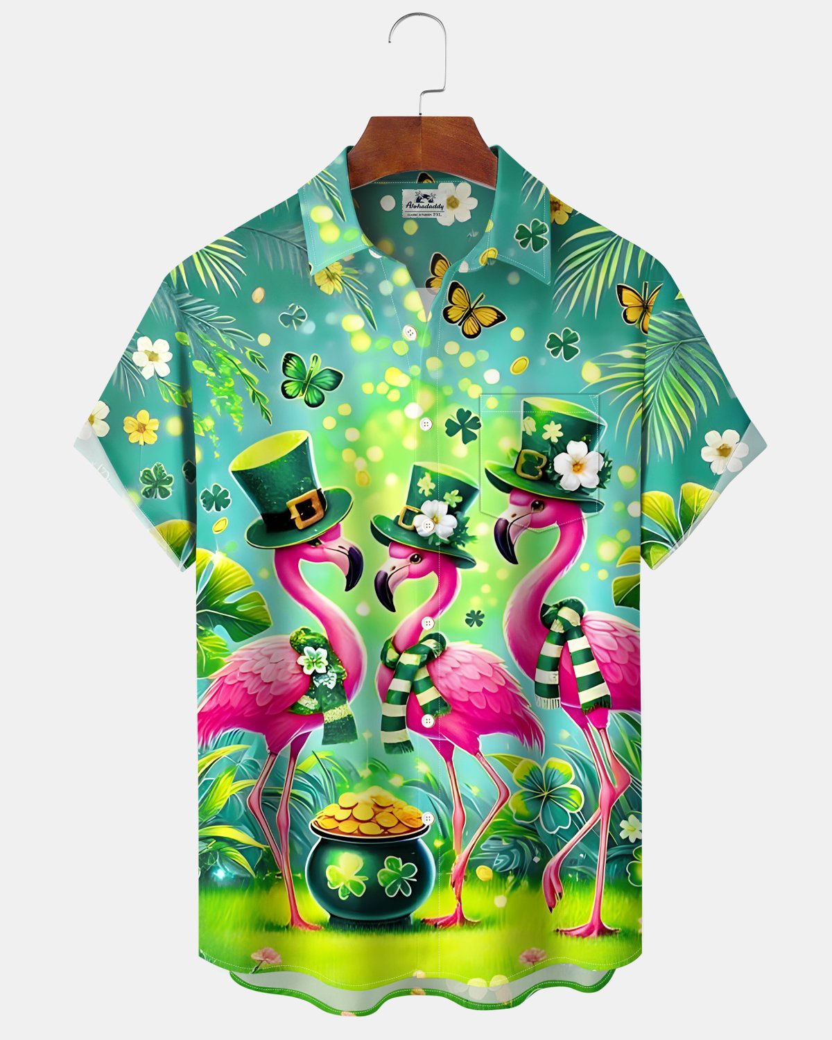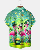 Alohadaddy® Holiday Flamingo St. Patrick's Day Clover Hawaiian Shirt