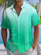 Alohadaddy® Casual Gradient Stripe Pockets Moisture Wicking Large Size Stretch Men's Short Sleeve Shirt