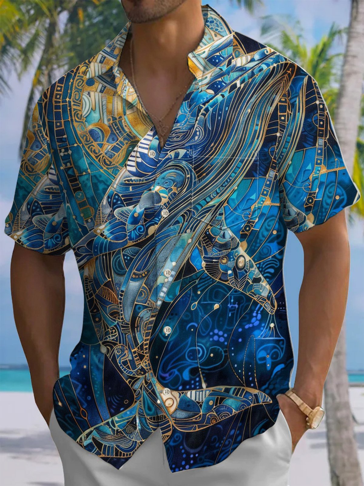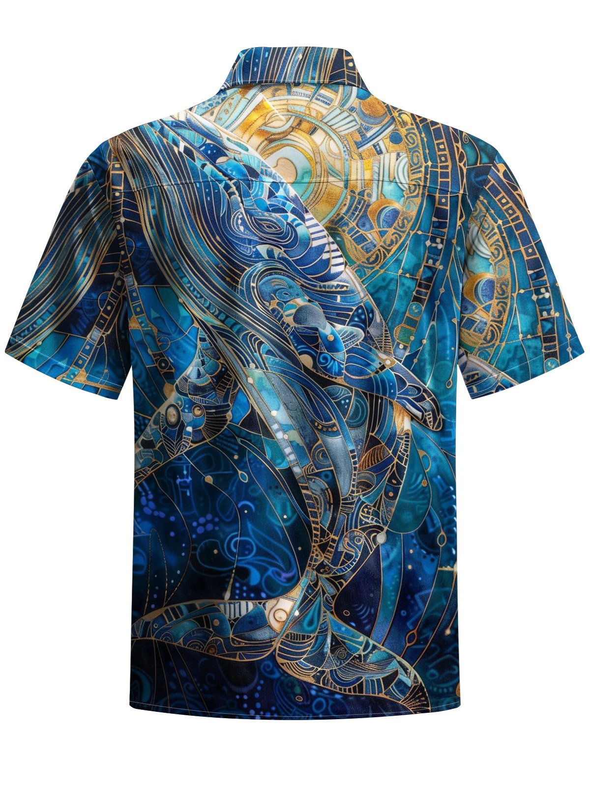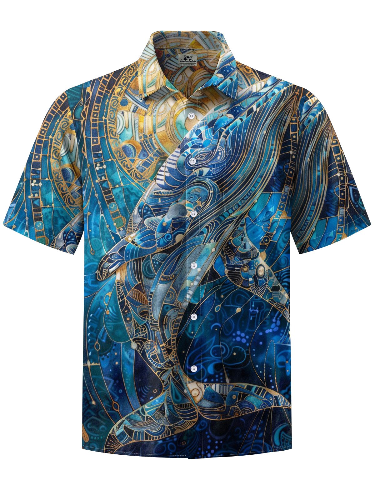 Alohadaddy® Hawaii Whale Art Print Chest Pocket Mens Short Sleeve Shirt Big & Tall