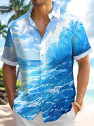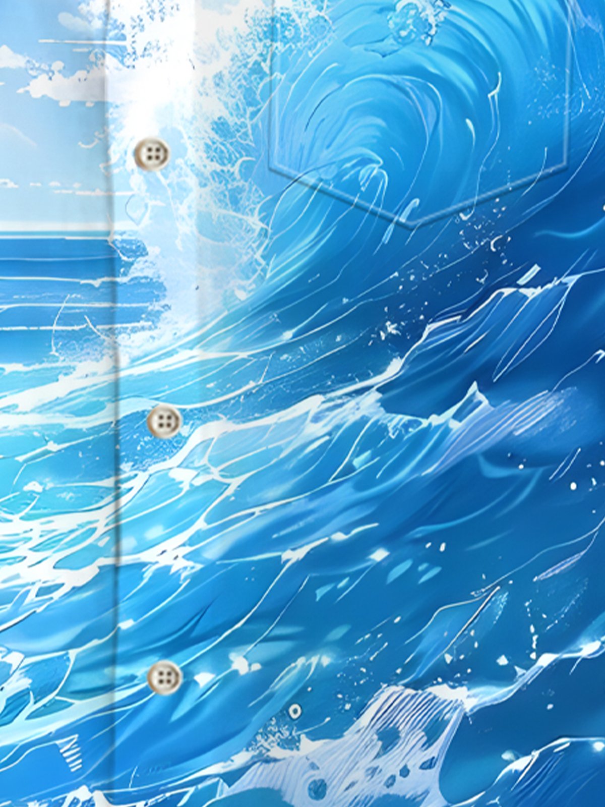 Alohadaddy® Hawaiian Beach Wave Tropical Men's Pocket Button Shirt