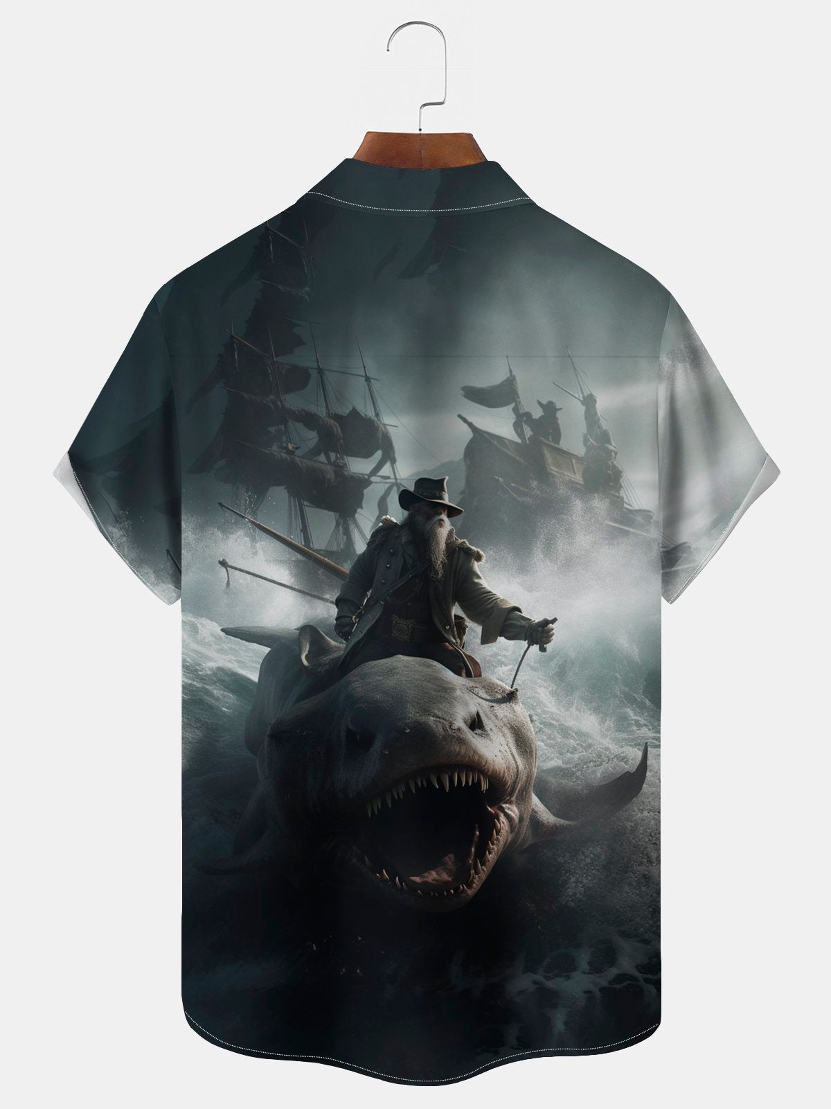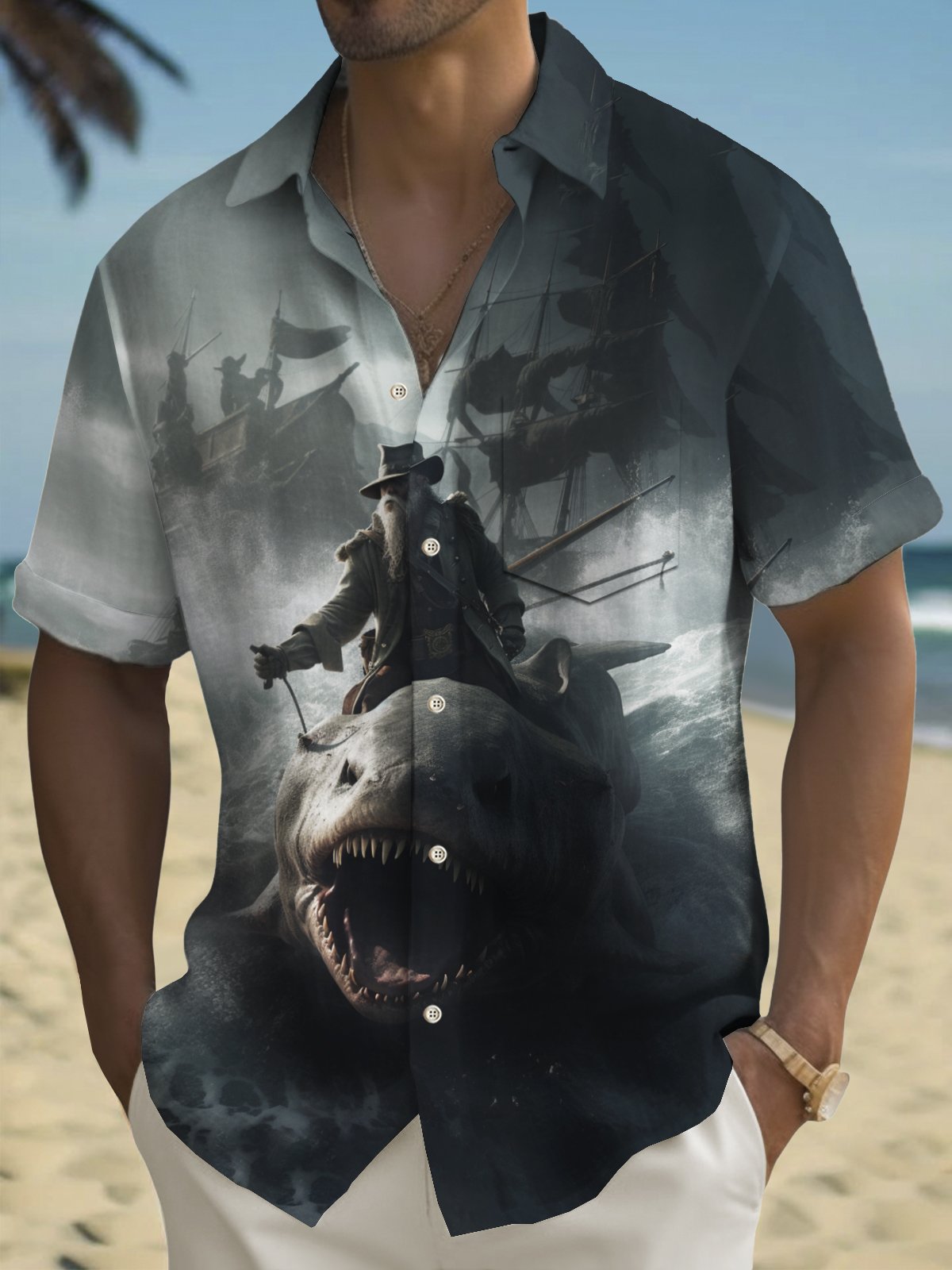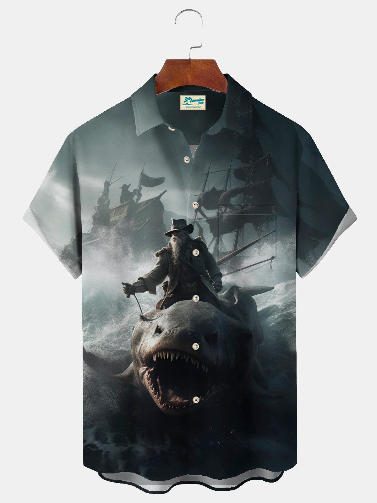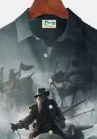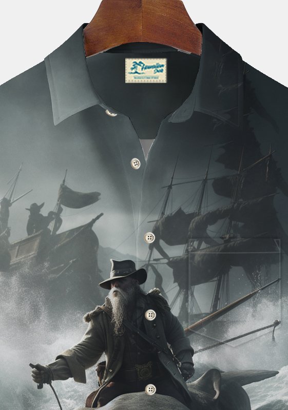 Alohadaddy Beach Vacation Men's Hawaiian Shirt Pirate Print Pocket Camping Shirt Big Tall