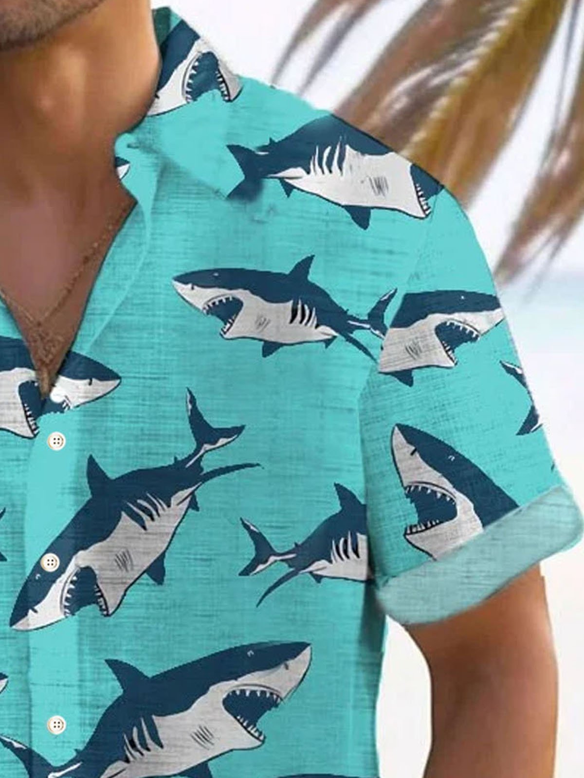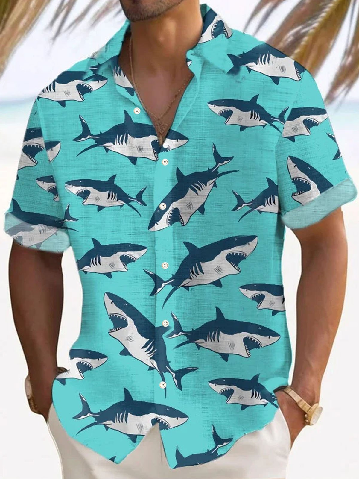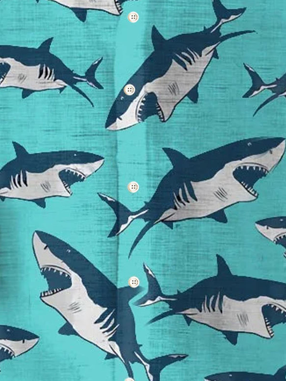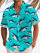 Alohadaddy Hawaii Shark Sea Life 3D Print Men's Button Pocket Long Sleeve Shirt Big & Tall