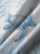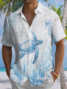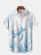 Alohadaddy Hawaiian Sea Turtle Seahorse Print Art Chest Pocket Stretch Short Sleeve Shirt