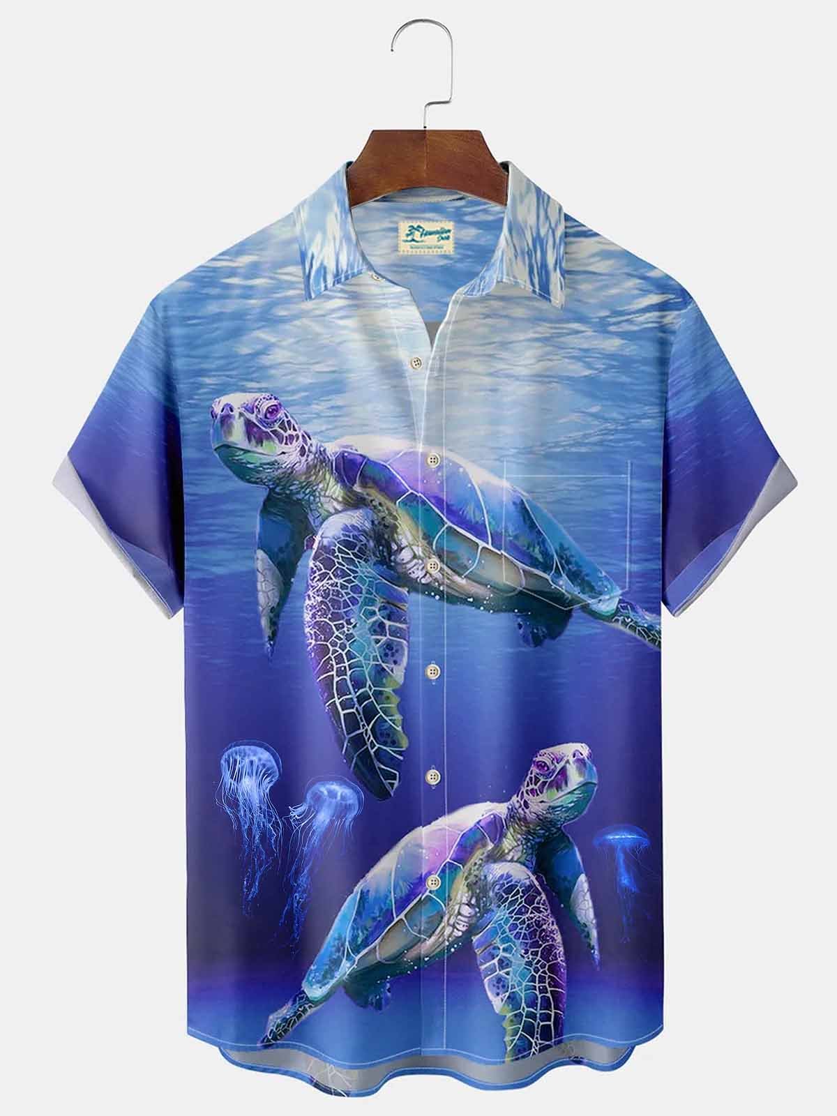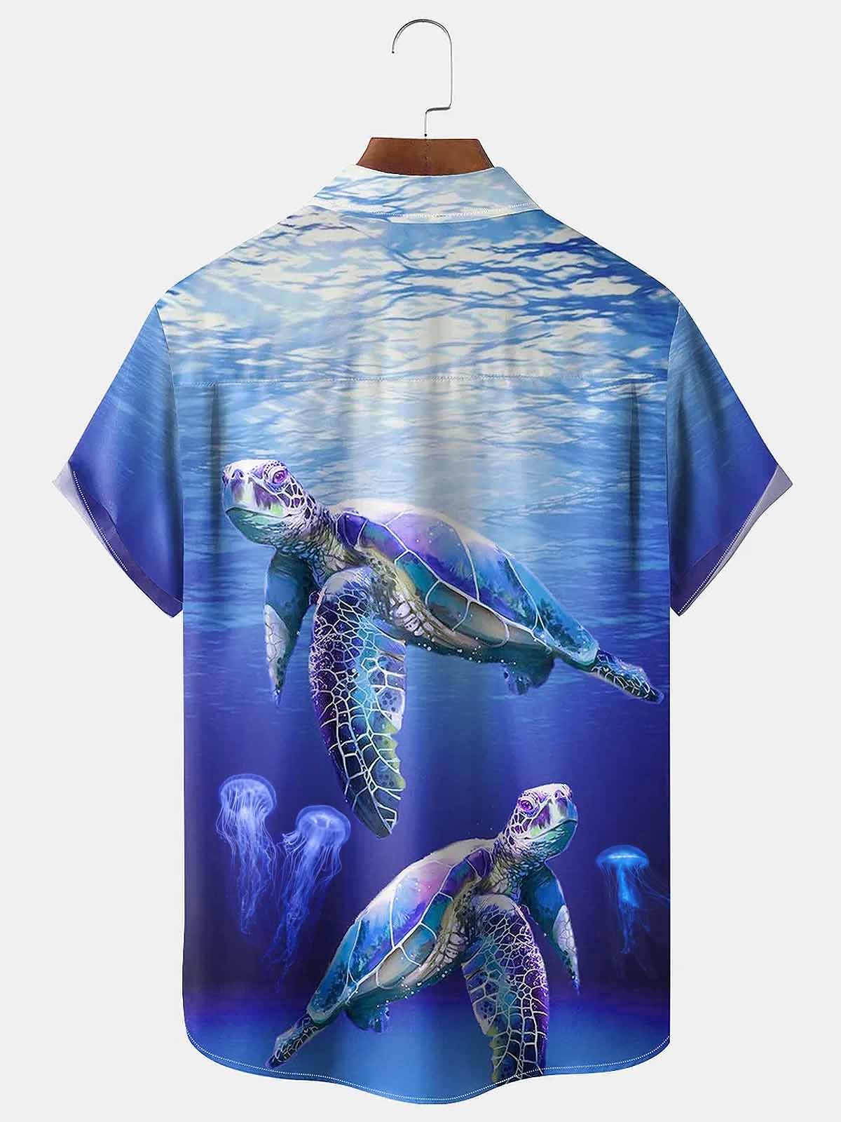Alohadaddy Hawaiian Turtle Ocean Men's Button Pocket Shirt