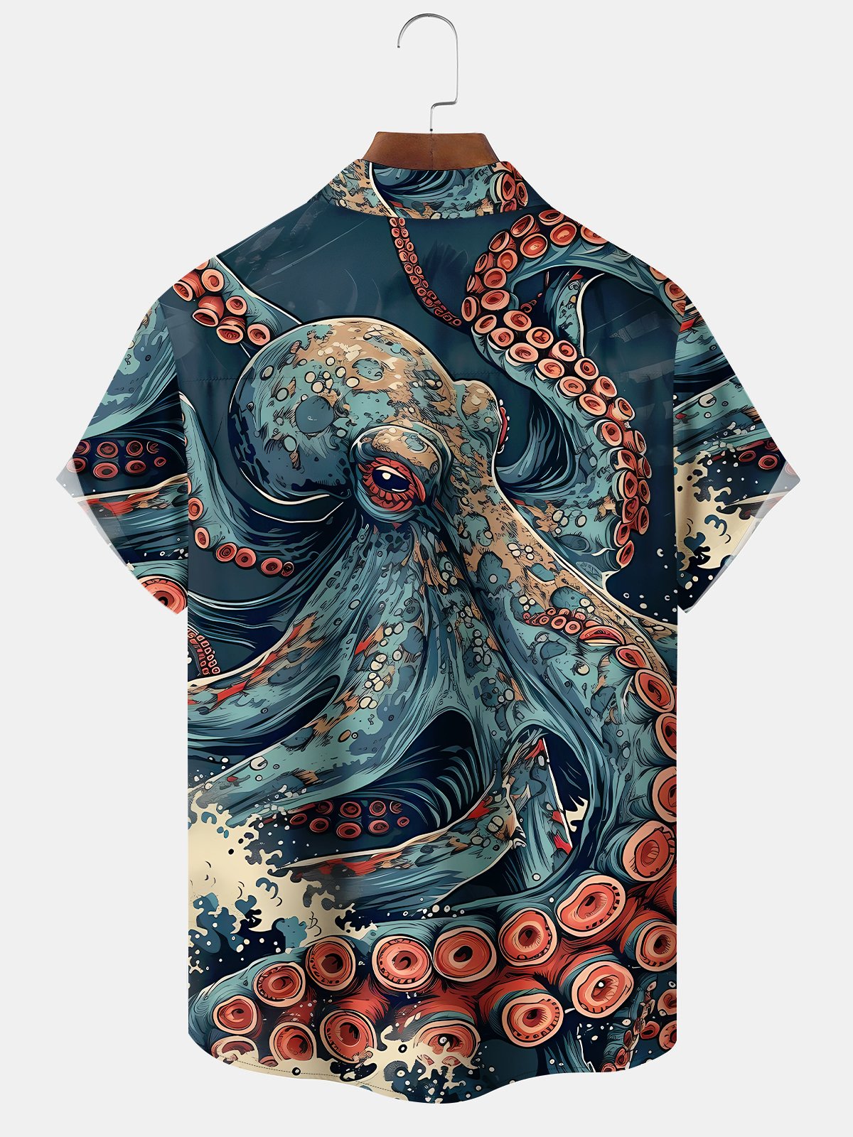 Alohadaddy Hawaiian Vintage Ocean Octopus Pocket Shirt