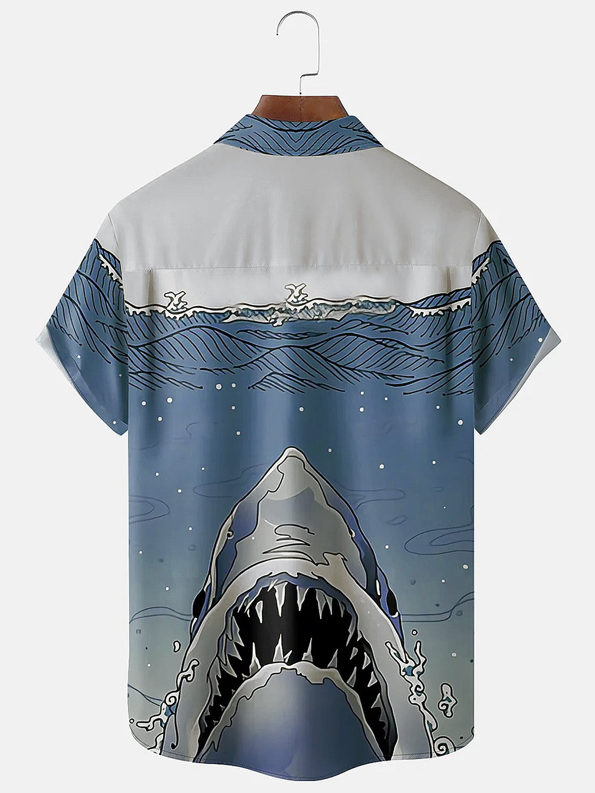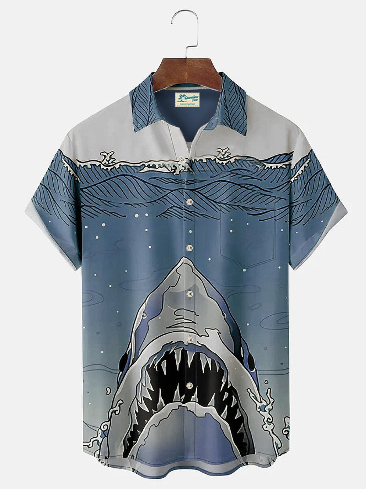 Alohadaddy Japanese Ukiyo-e Shark Chest Pocket Short Sleeve Hawaiian Shirt
