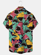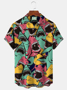 Alohadaddy Shark Print Beach Men's Hawaiian Plus Size Shirt with Pockets