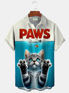 Alohadaddy Vintage Cat Print Chest Pocket Men's Tall Shirt Big Tall
