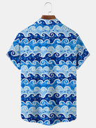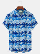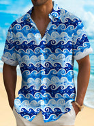 Alohadaddy Vintage Japanese Wave Blue Men's Art Shirt Ukiyoe Stretch Quick-drying Button Hawaiian Shirts
