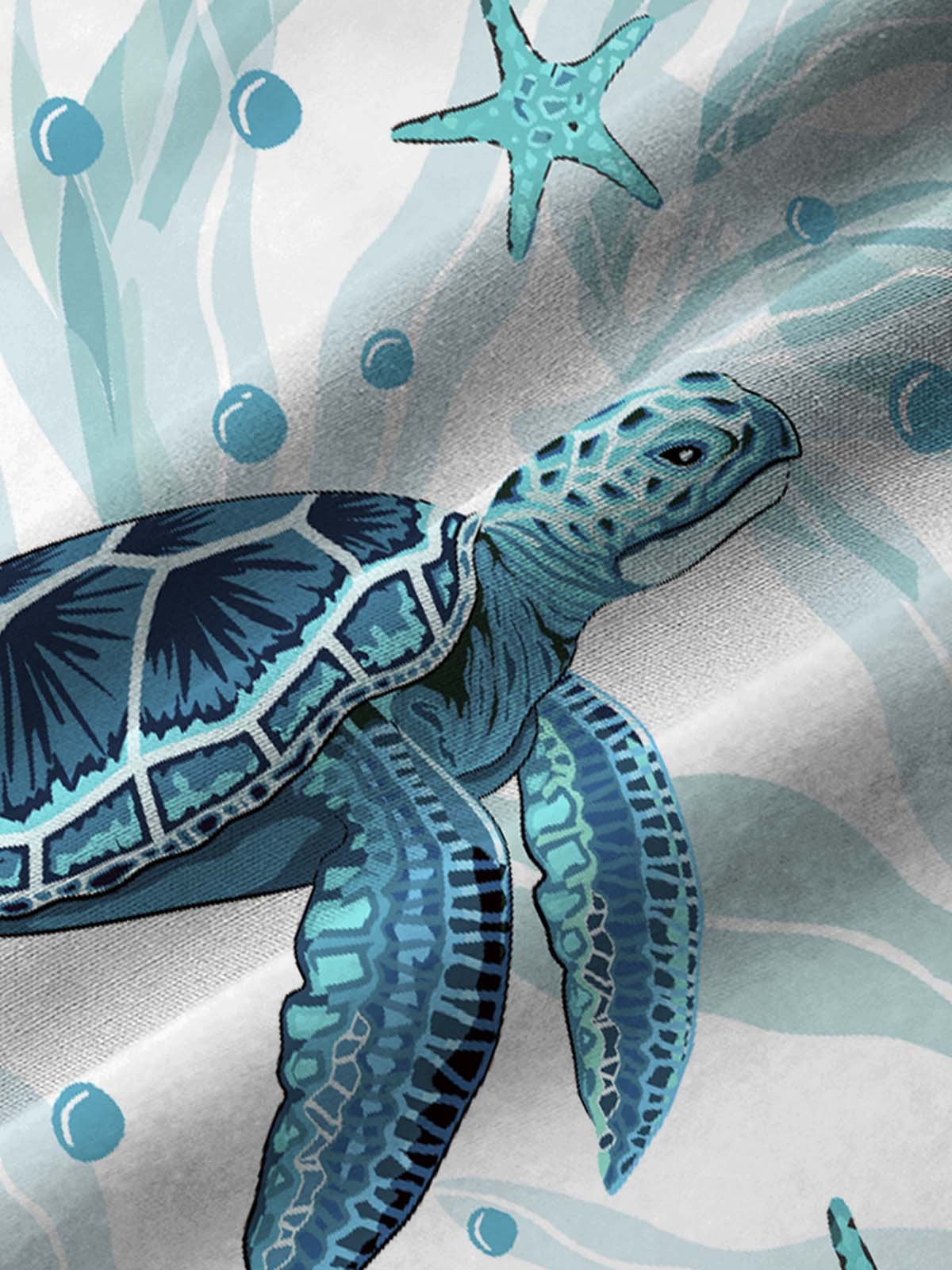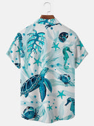 Alohadaddy Vintage Nautical Sea Life Blue Men's Hawaiian Shirts Fun Cartoon Stretch Aloha Camp Pocket Shirts