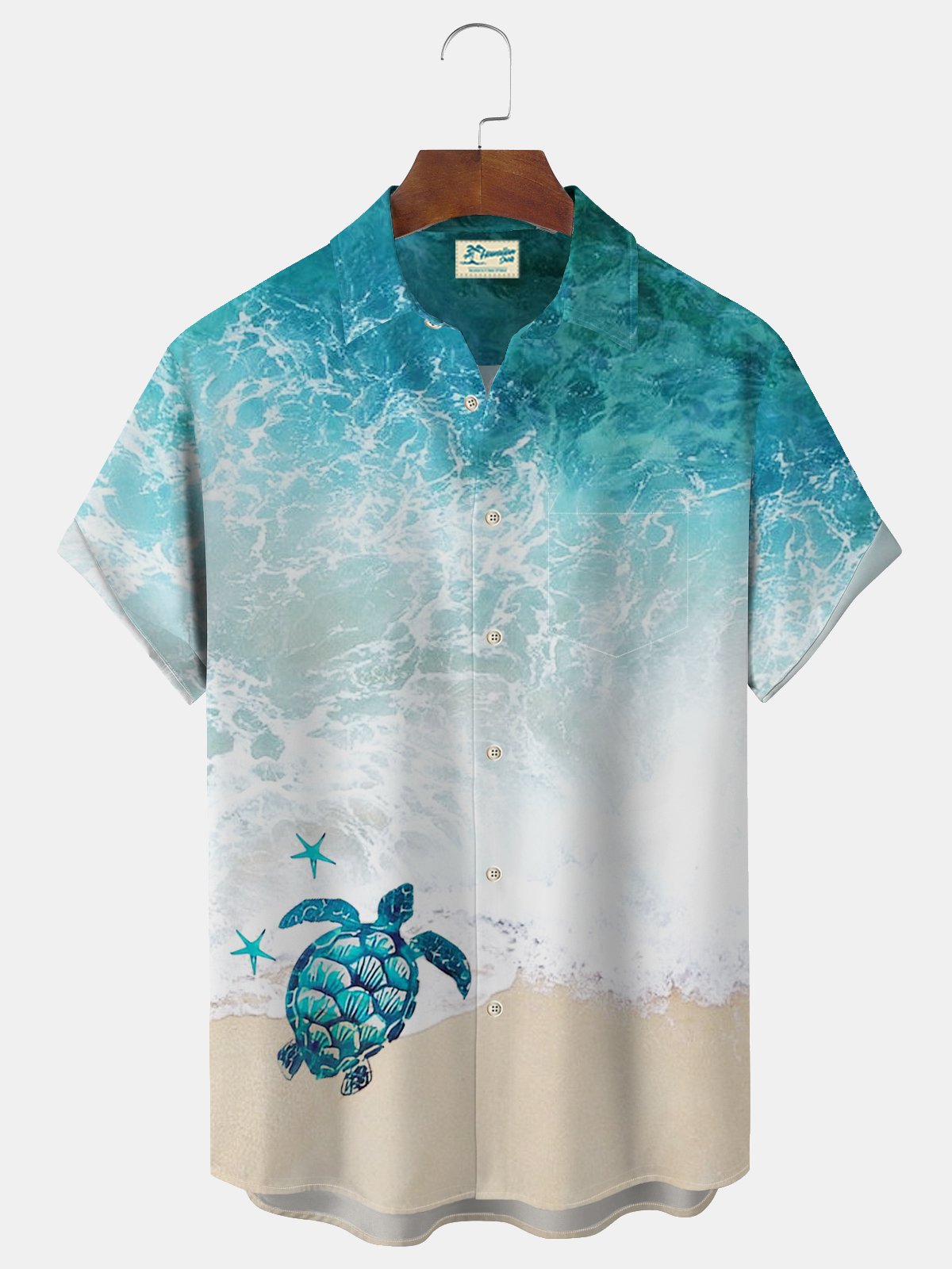 Alohadaddy Wave Ripple Turtle Men's Button Pocket Shirt