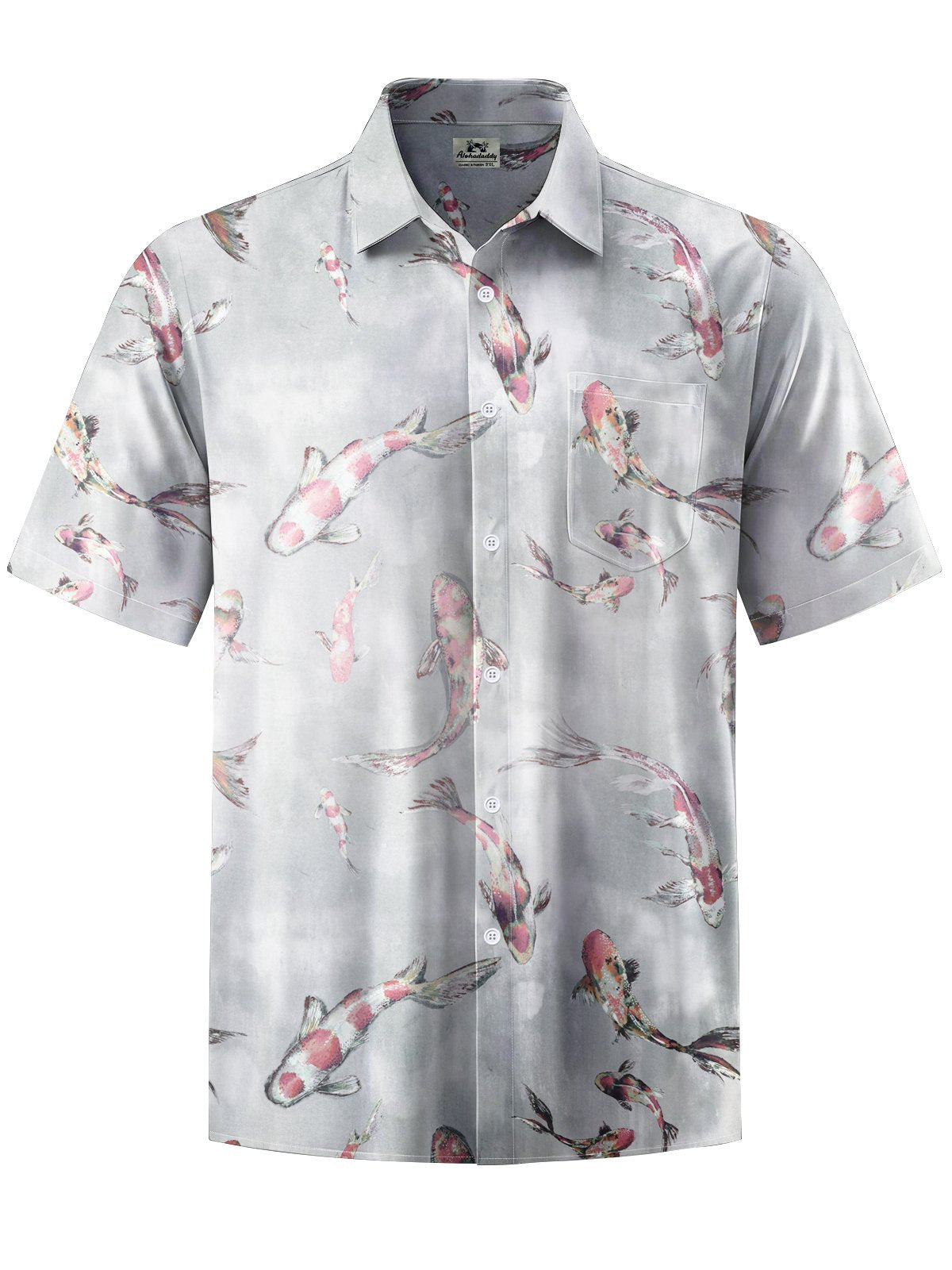 Alohadaddy® Casual Goldfish Printed Art Chest Pocket Men Short Sleeve Shirt Big & Tall