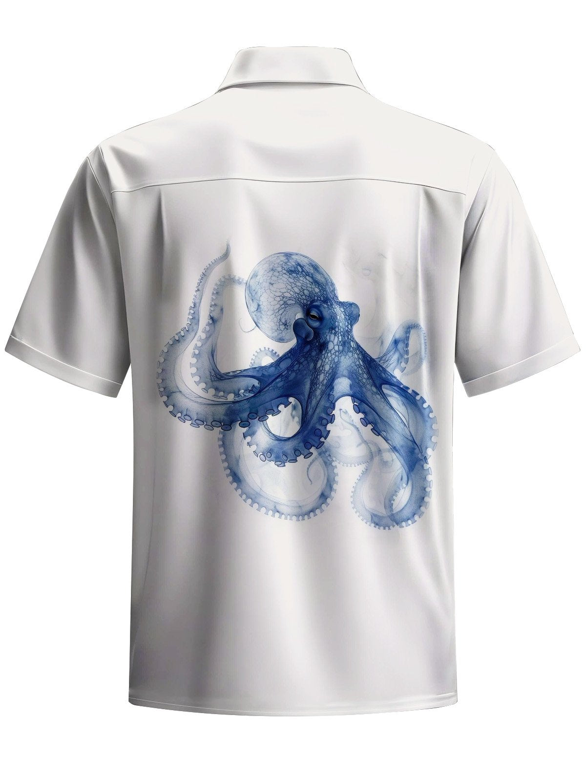 Alohadaddy® Casual Octopus Art Print Chest Pocket Mens Short Sleeve Shirt Big & Tall