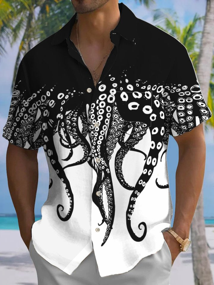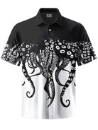 Alohadaddy® Casual Octopus Ombre Art Print Chest Pocket Men's Short Sleeve Shirt Big & Tall