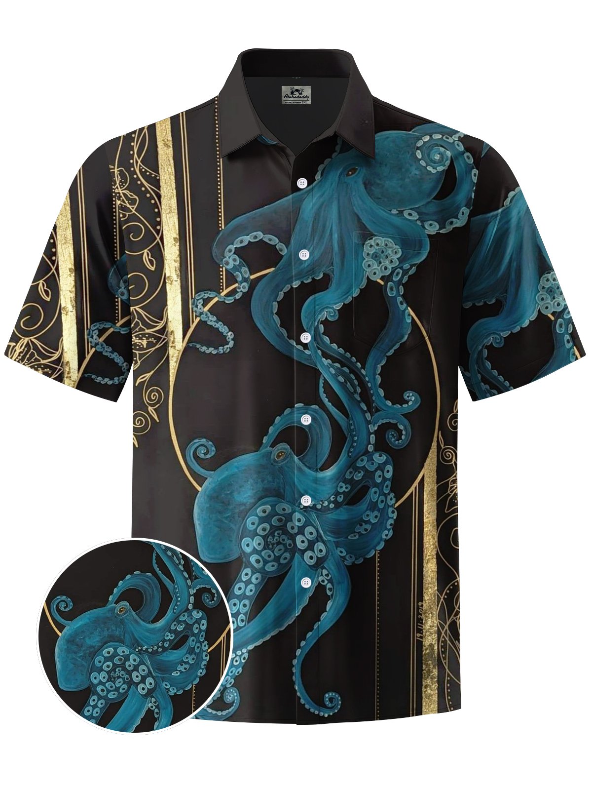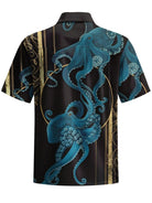 Alohadaddy® Casual Octopus Stripe Art Print Chest Pocket Mens Short Sleeve Shirt Big & Tall