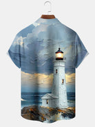 Alohadaddy® Casual Seaside Lighthouse Print Art Pockets Moisture Wicking Hawaiian Shirt Big & Tall