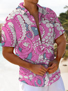 Alohadaddy® Hawaiian Octopus Art Print Chest Pocket Mens Short Sleeve Shirts Big & Tall