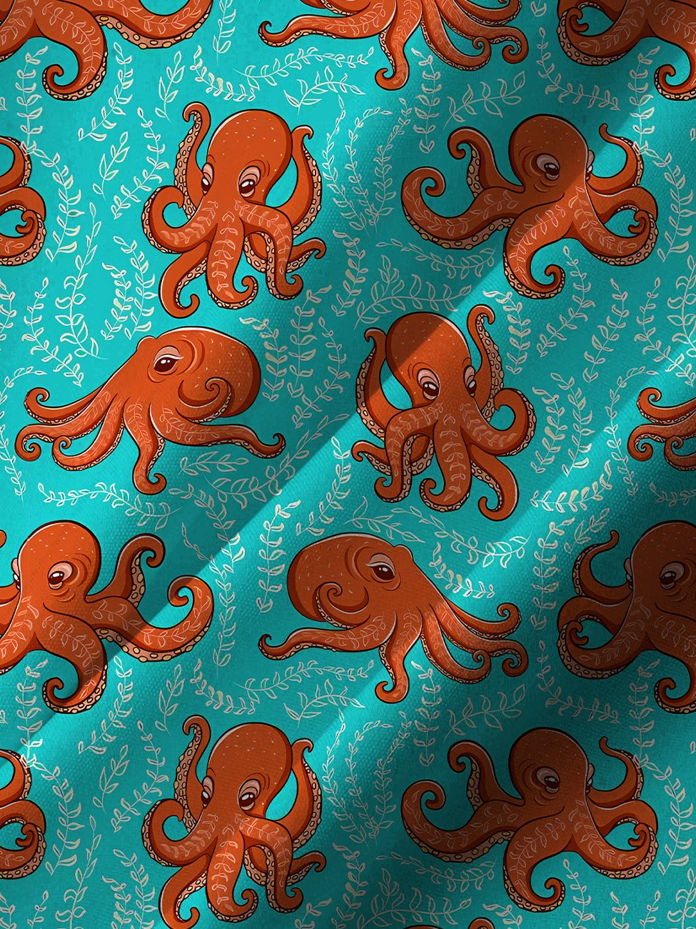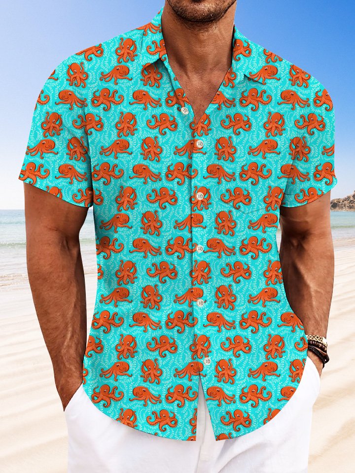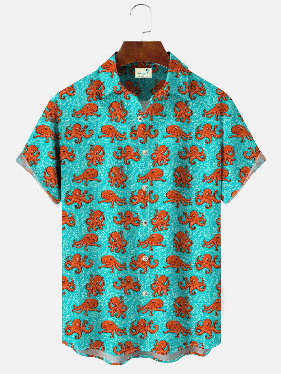 Alohadaddy Sea Life Octopus Button Pocket Casual Short Sleeve Shirt