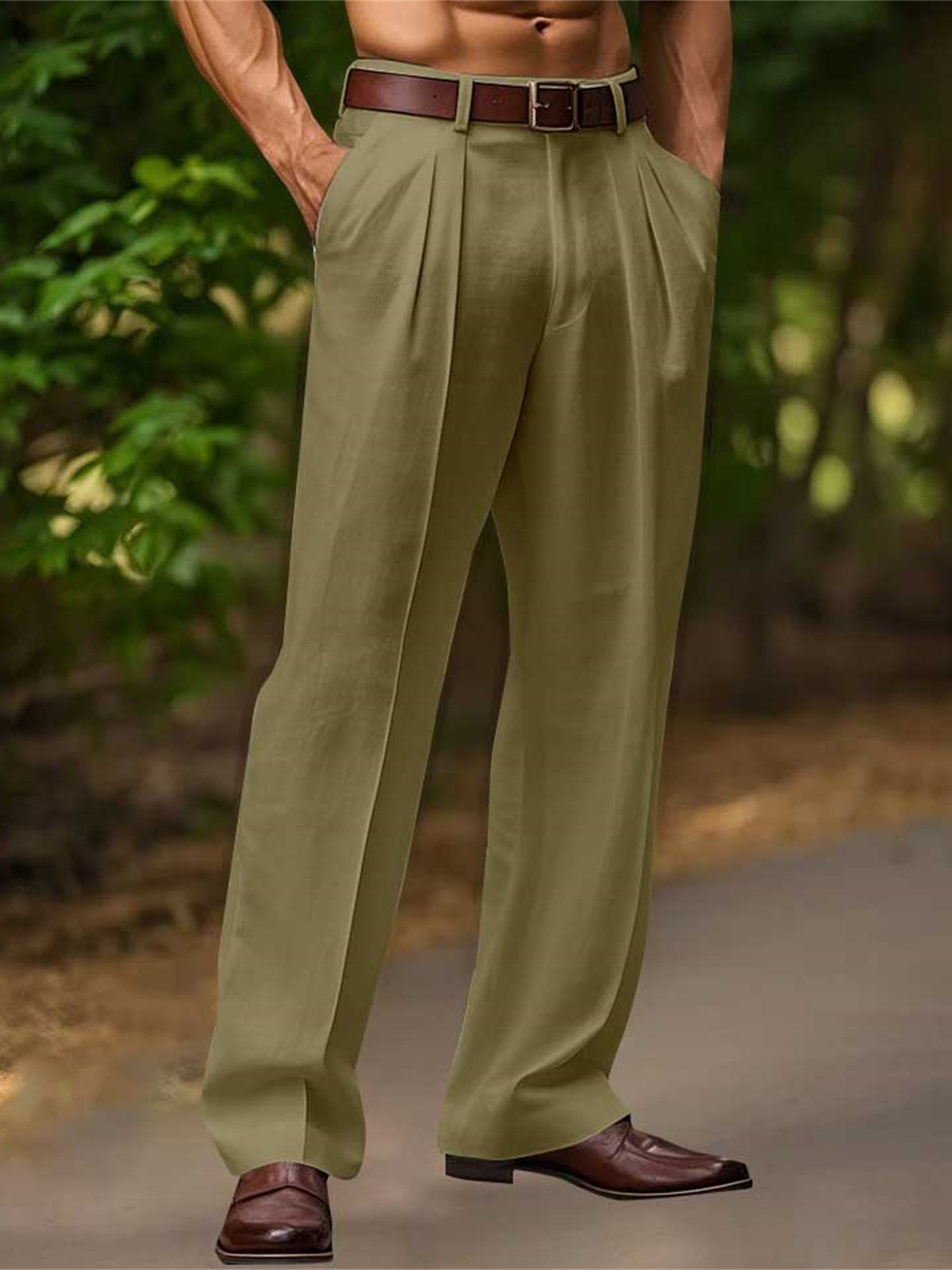 Alohadaddy® Drawstring Waist Multi-Pocket Cotton Linen Capri Beach Pants