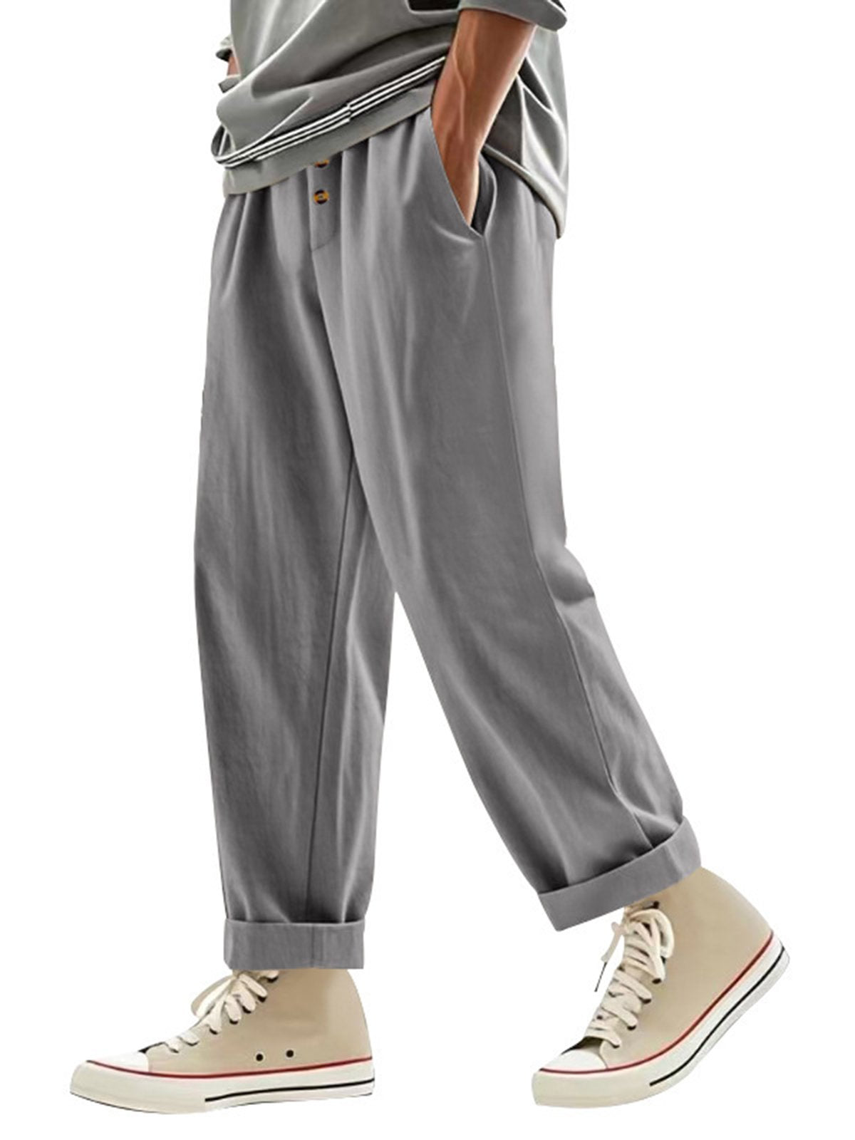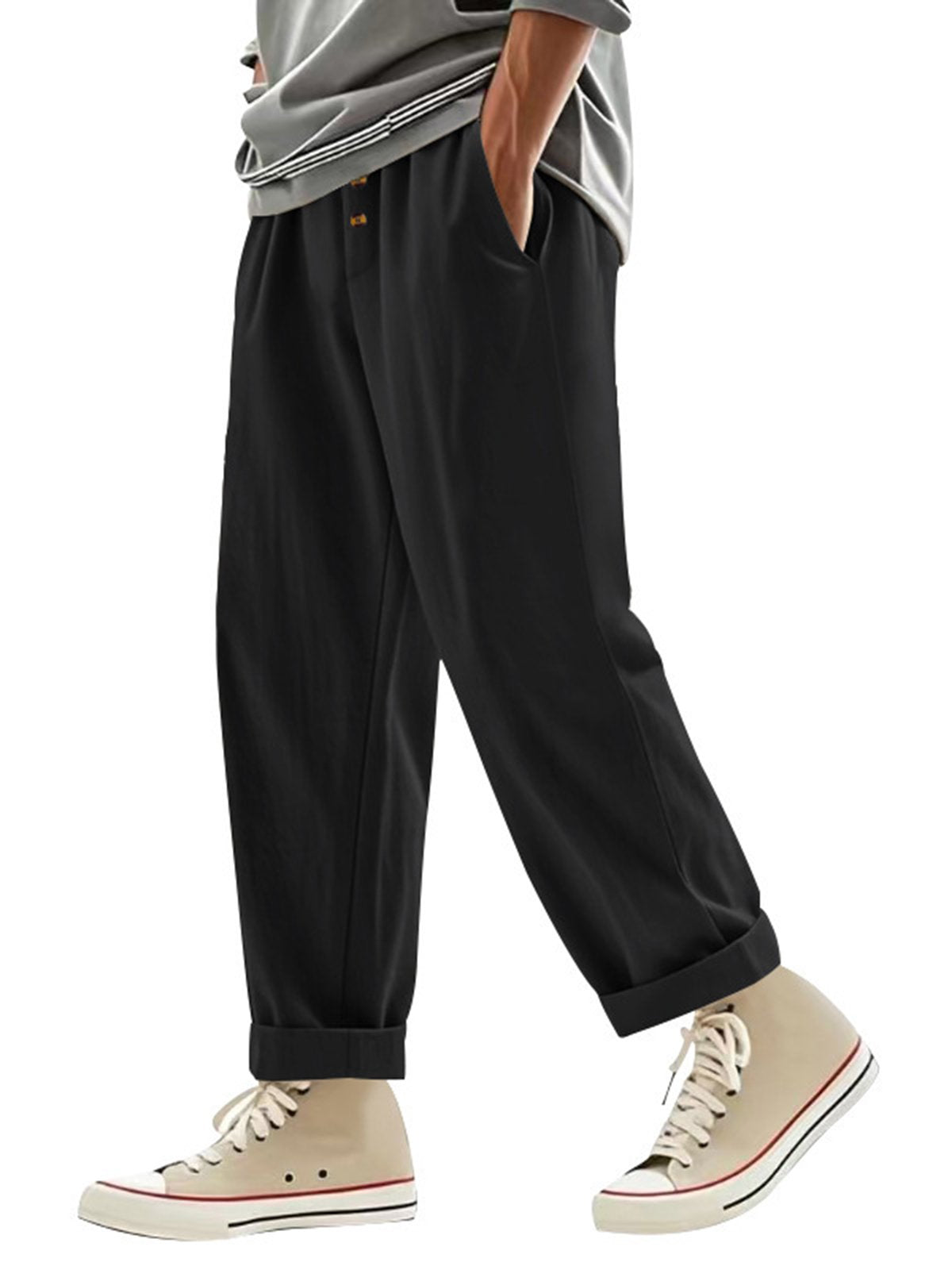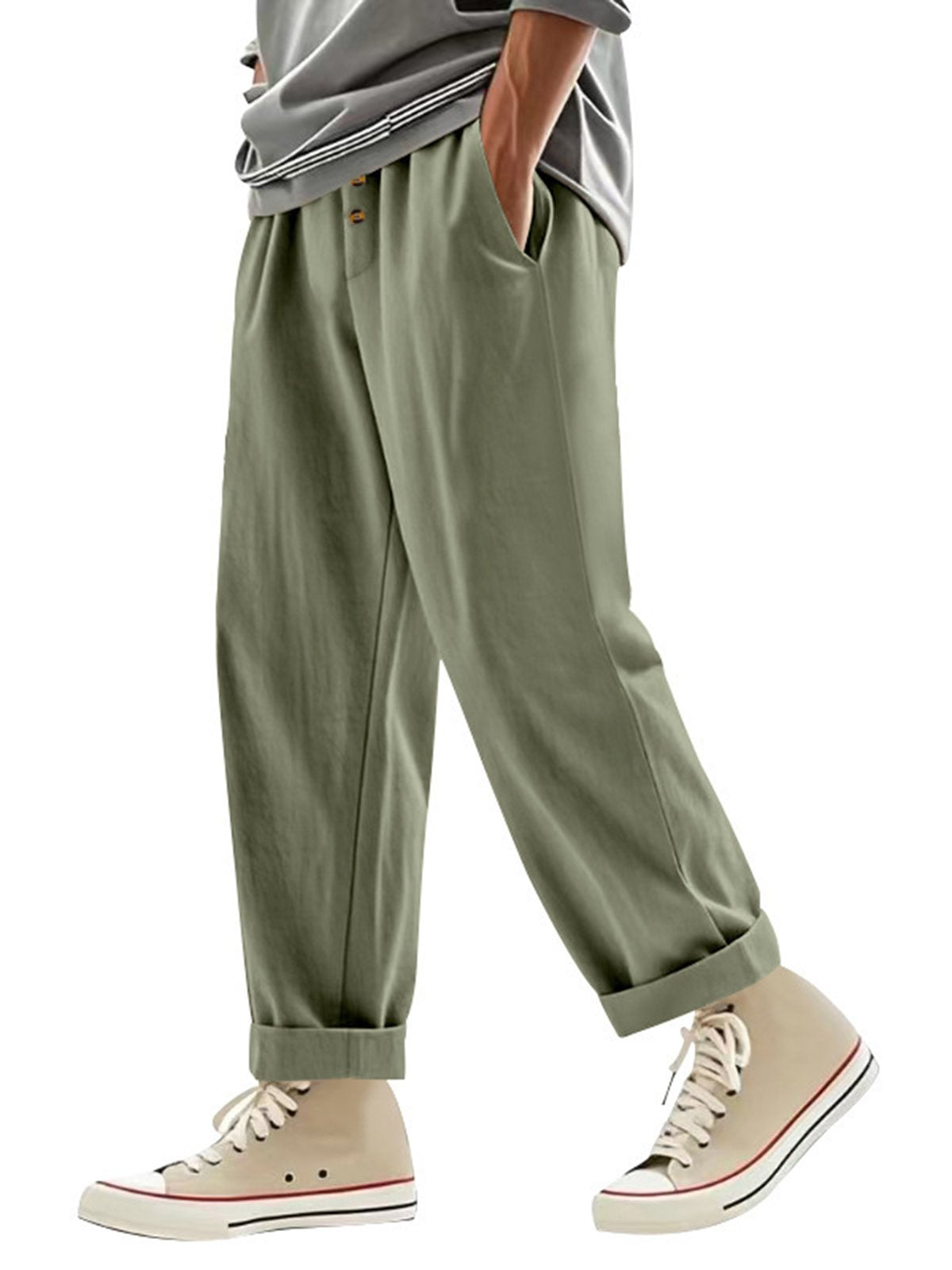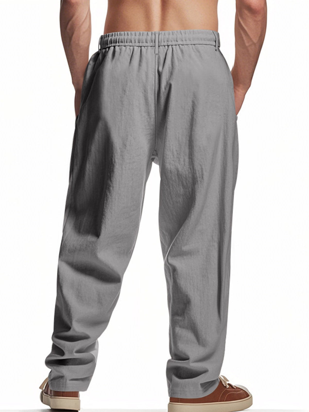 Alohadaddy® casual solid color men's breathable cotton and linen loose casual sports trousers Big & Tall