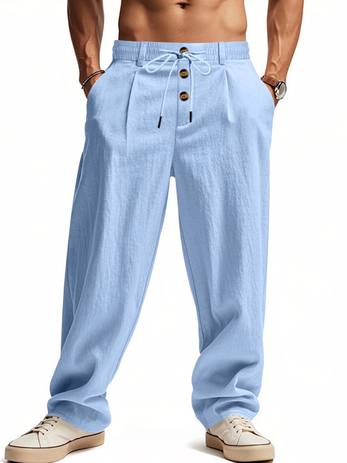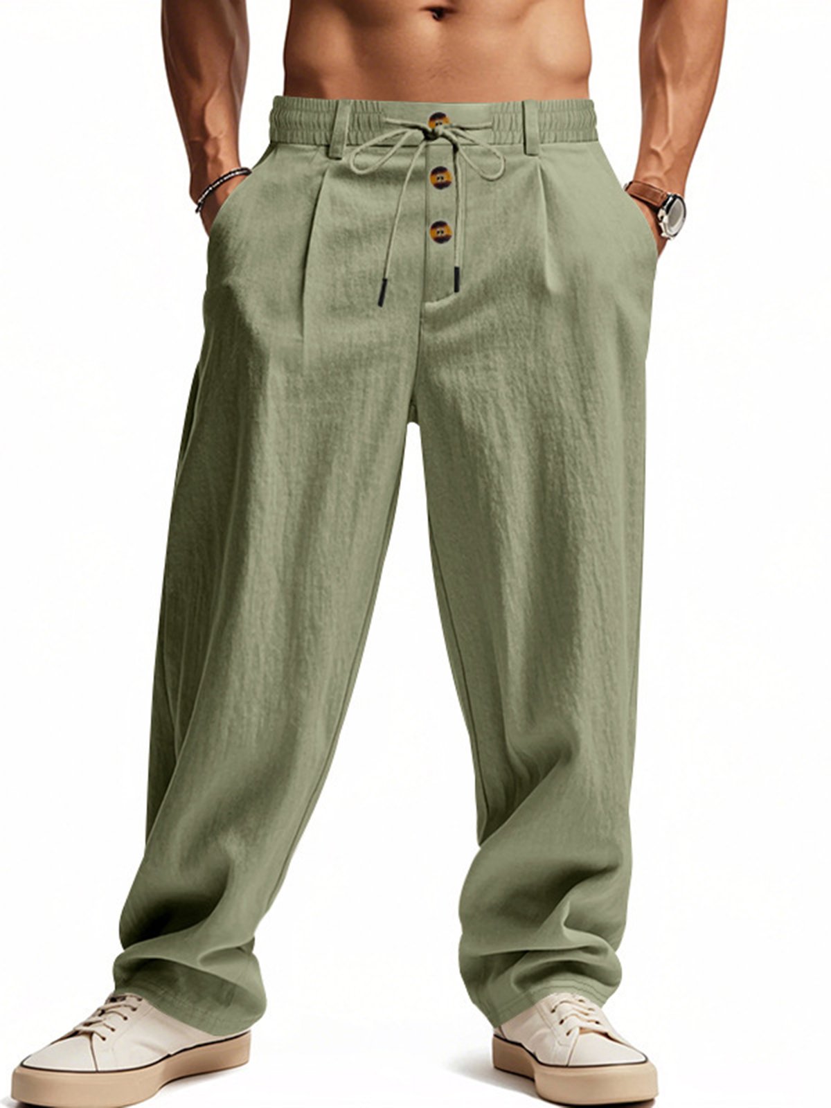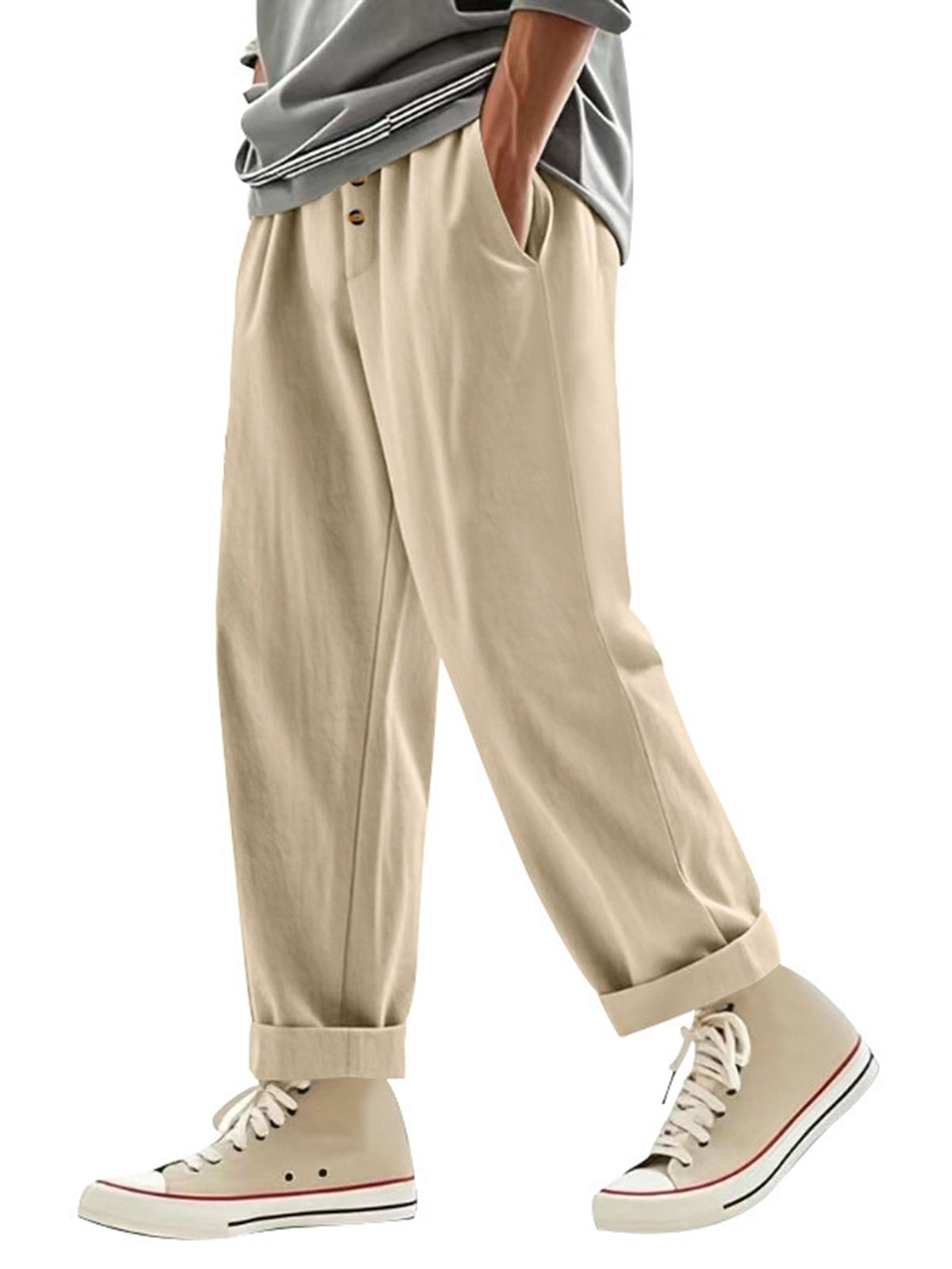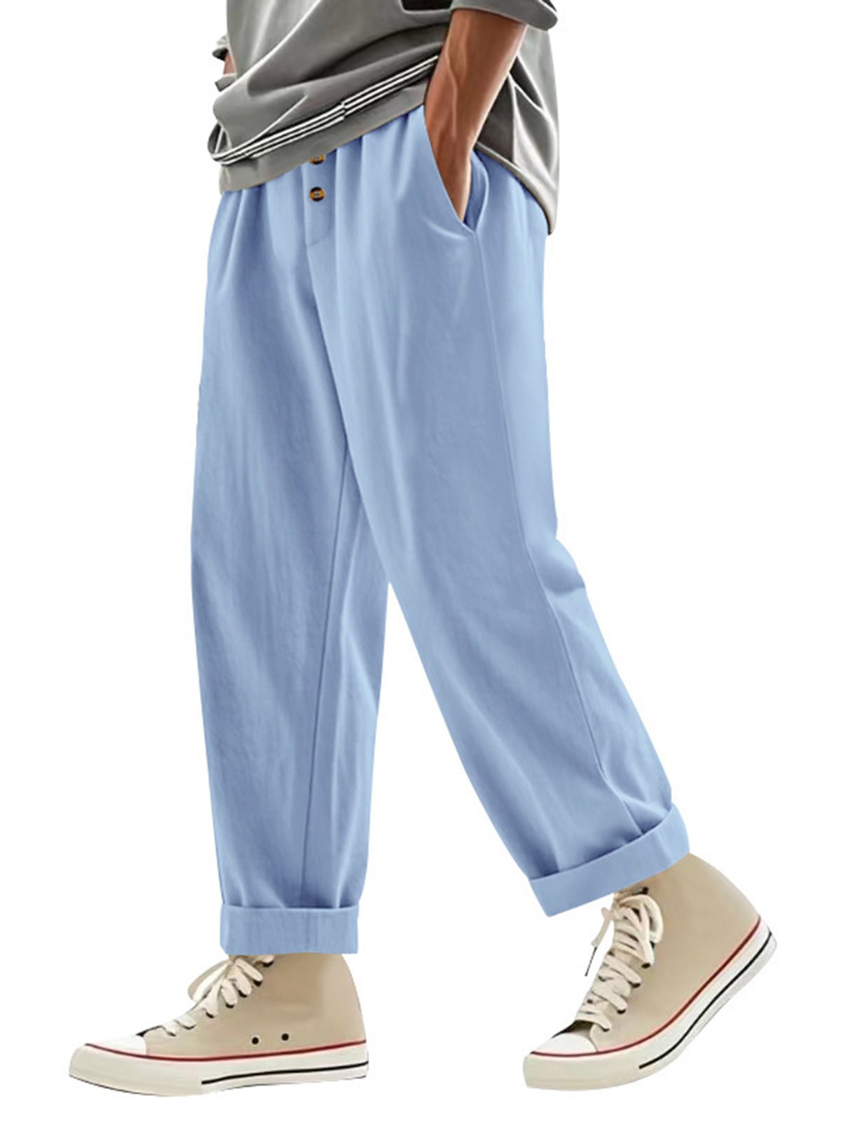 Alohadaddy® casual solid color men's breathable cotton and linen loose casual sports trousers Big & Tall