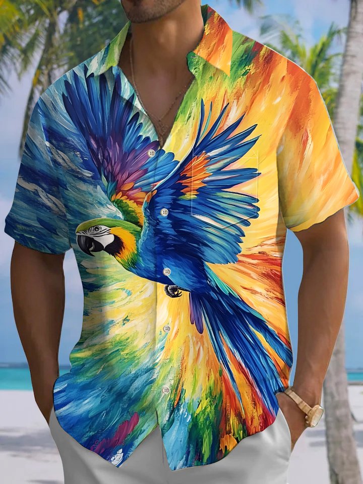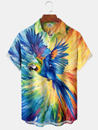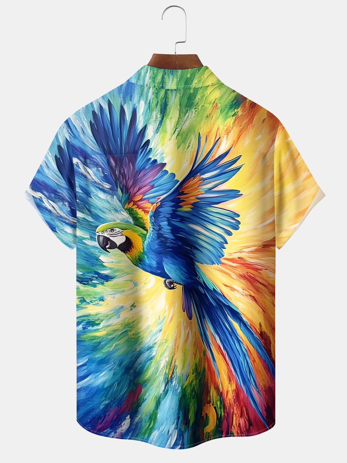 Alohadaddy® Casual Oil Painting Parrot Print Art Moisture Wicking Chest Pocket Stretch Oversized Hawaiian Shirt