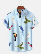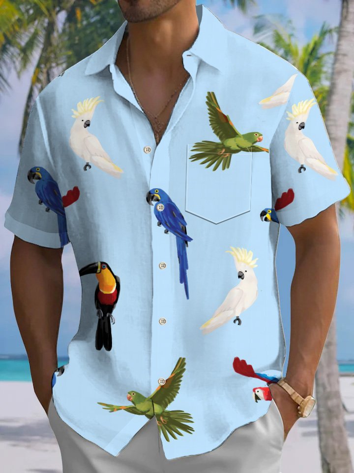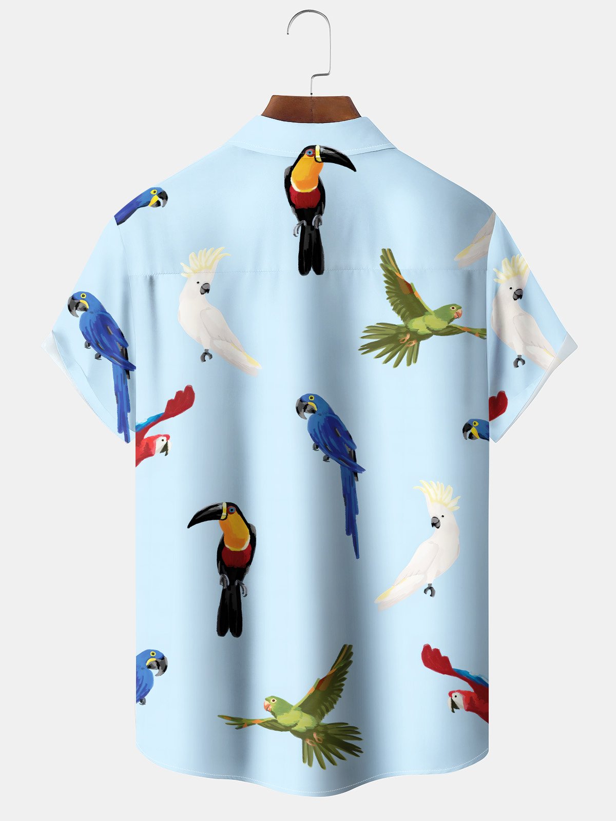 Alohadaddy® Casual Parrot Art Print Pockets Moisture Wicking Oversized Stretch Hawaiian Shirt