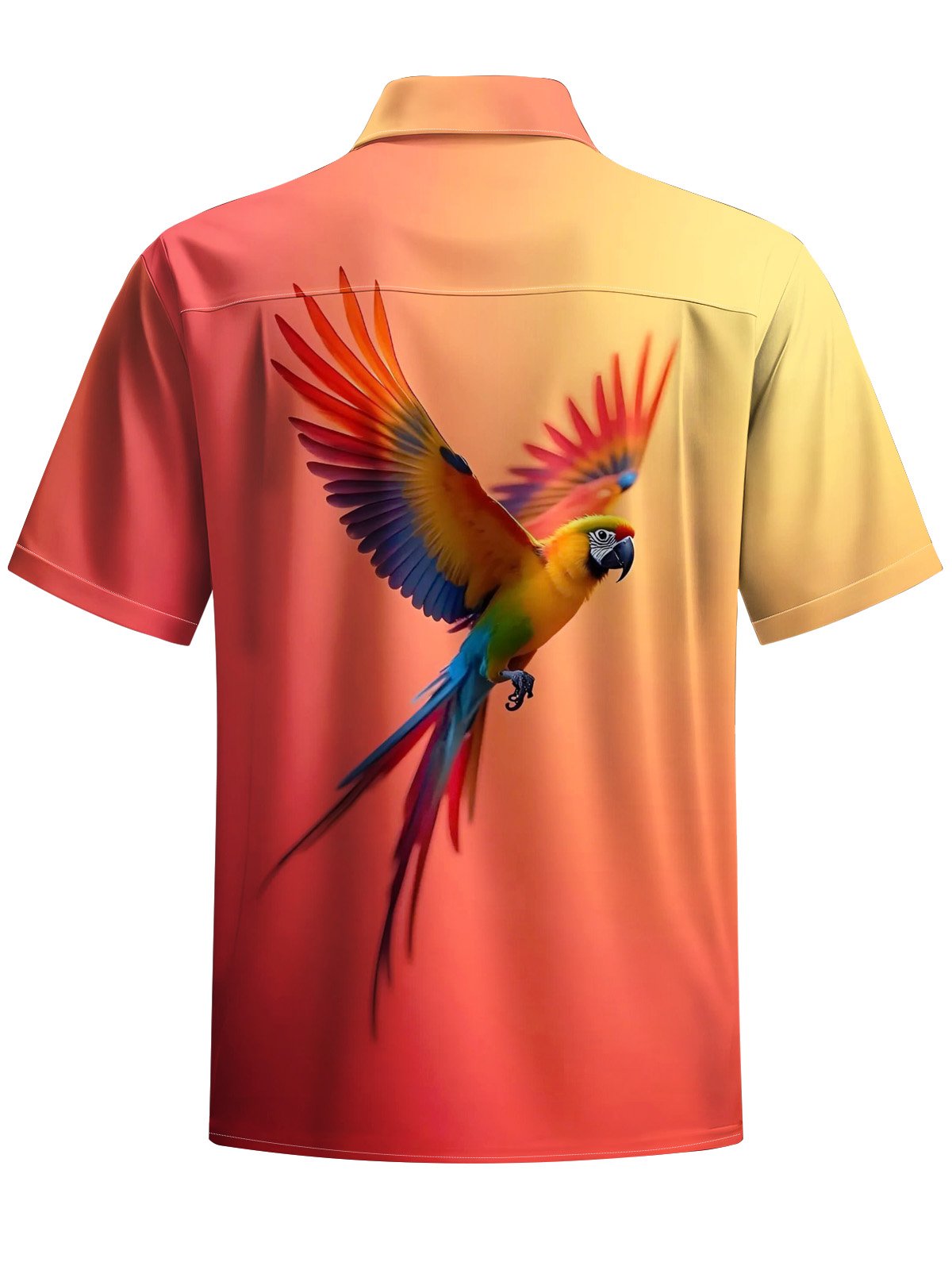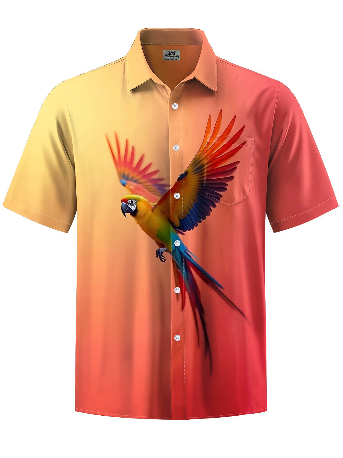 Alohadaddy® Hawaiian Parrot Art Print Chest Pocket Moisture Wicking Mens Short Sleeve Shirt Big & Tall