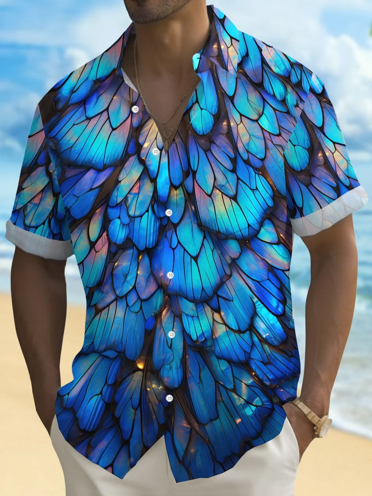 Alohadaddy® Retro Geometric Abstract Art 3D Printed Men's Button Pocket Short Sleeve Shirt Big & Tall
